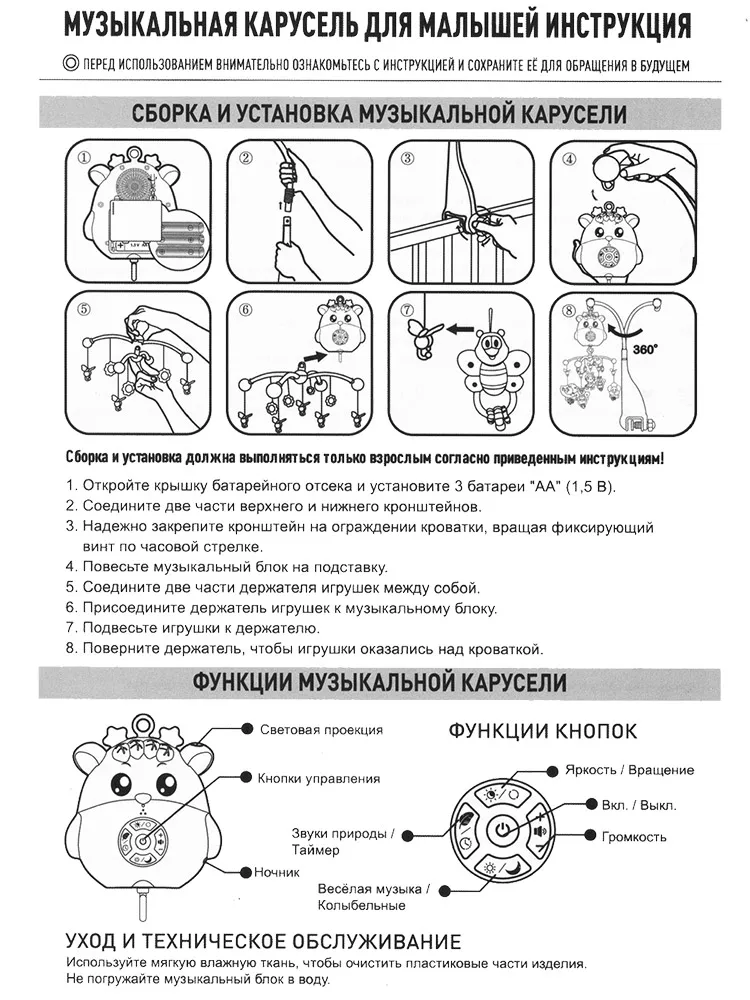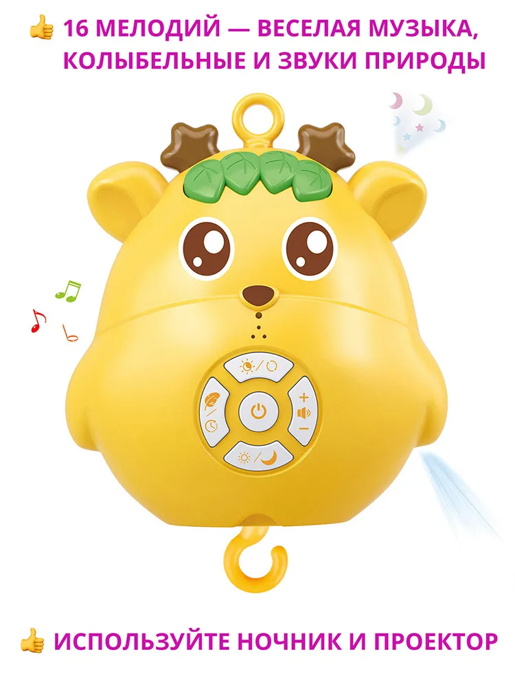 Разнообразная музыка: веселые мелодии — 8 шт., колыбельные — 5 шт., звуки природы — 3 шт.;