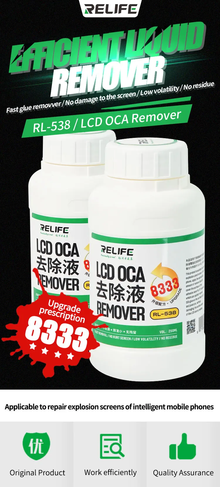 Быстрое удаление клея/отсутствие повреждения экрана/низкая волатильность/отсутствие остатков