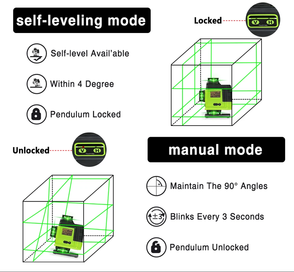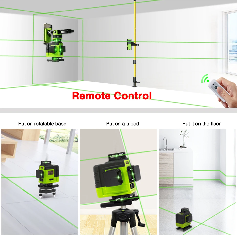 Уровень лазерный Clubiona IE16R, зеленый лазер 4D с пультом ДУ и аккумулятором на 5000 мА · ч