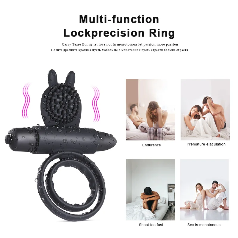 10 Скоростей Вибрационный массажер для пениса двойные мужские секс кольца Мошонка целомудрия клетка Задержка эякуляции Эротические Секс игрушки для мужчин Вибратор