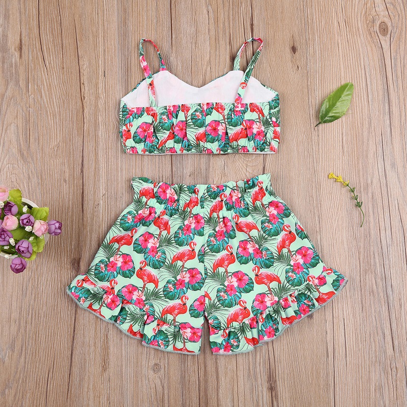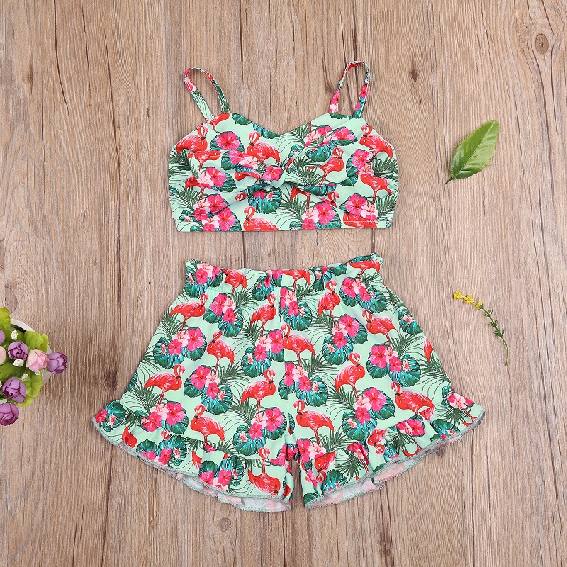 2021 летние топы на бретельках с принтом фламинго для маленьких девочек, шорты с высокой талией комплект одежды из 2 предметов комплект детской одежды