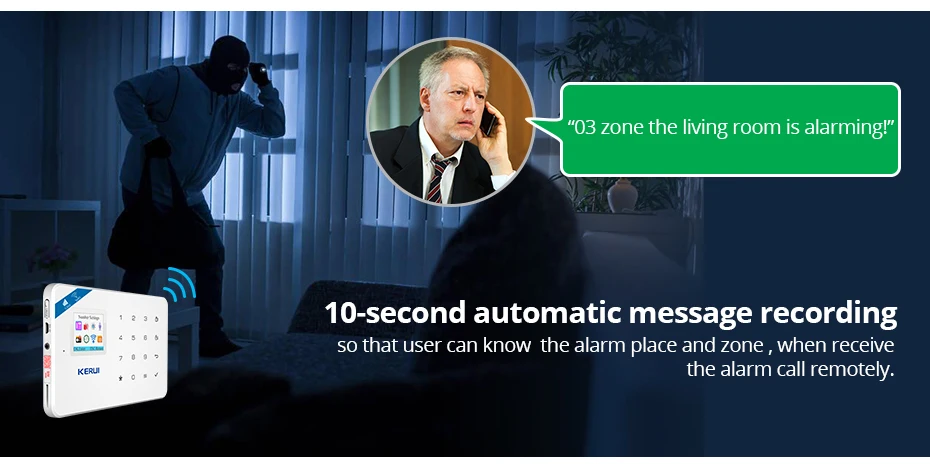 Автоматическая запись сообщений на 10 с встроенным искусственным голосом, чтобы пользователь мог знать место и зону сигнализации при получении звонка удаленно