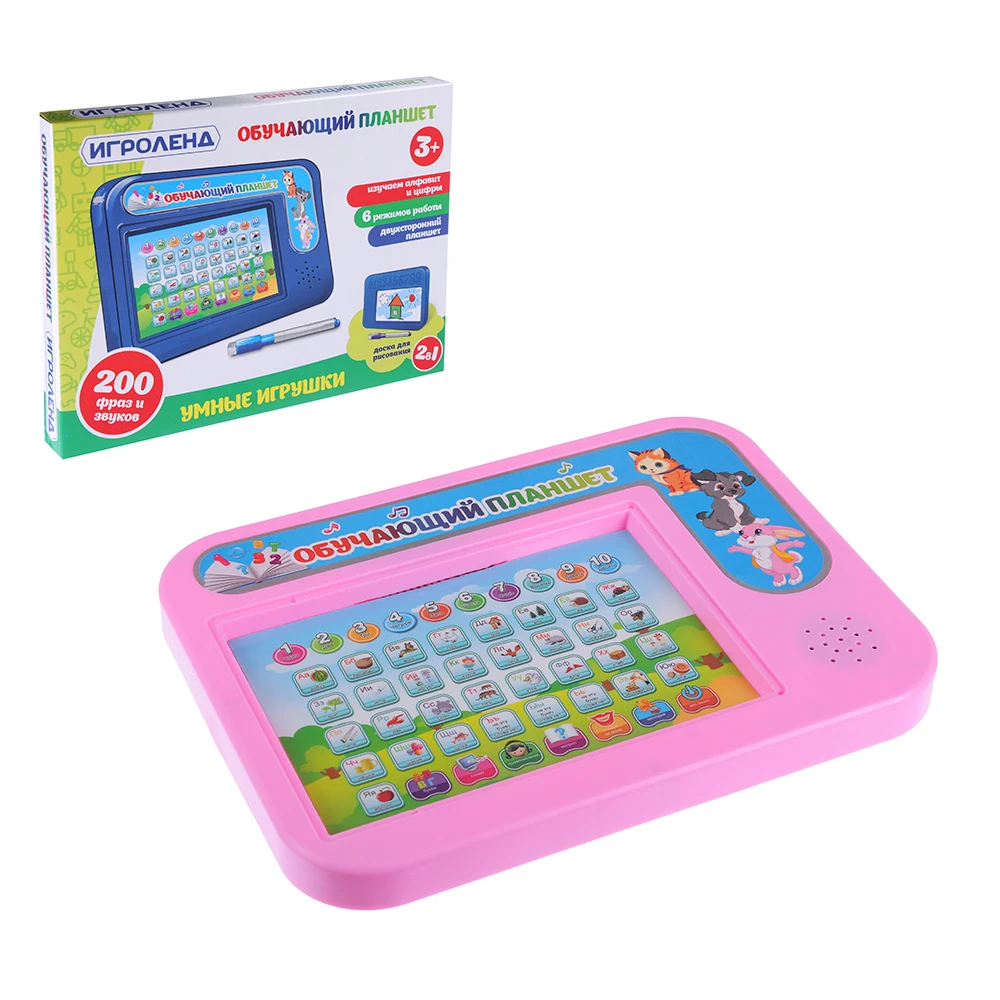 ИГРОЛЕНД ПЛАНШЕТ ОБУЧАЮЩИЙ С ДОСКОЙ ДЛЯ РИСОВАНИЯ, ЗВУК, 3AA,ABS, 23Х17Х2СМ, 4 ДИЗАЙНА