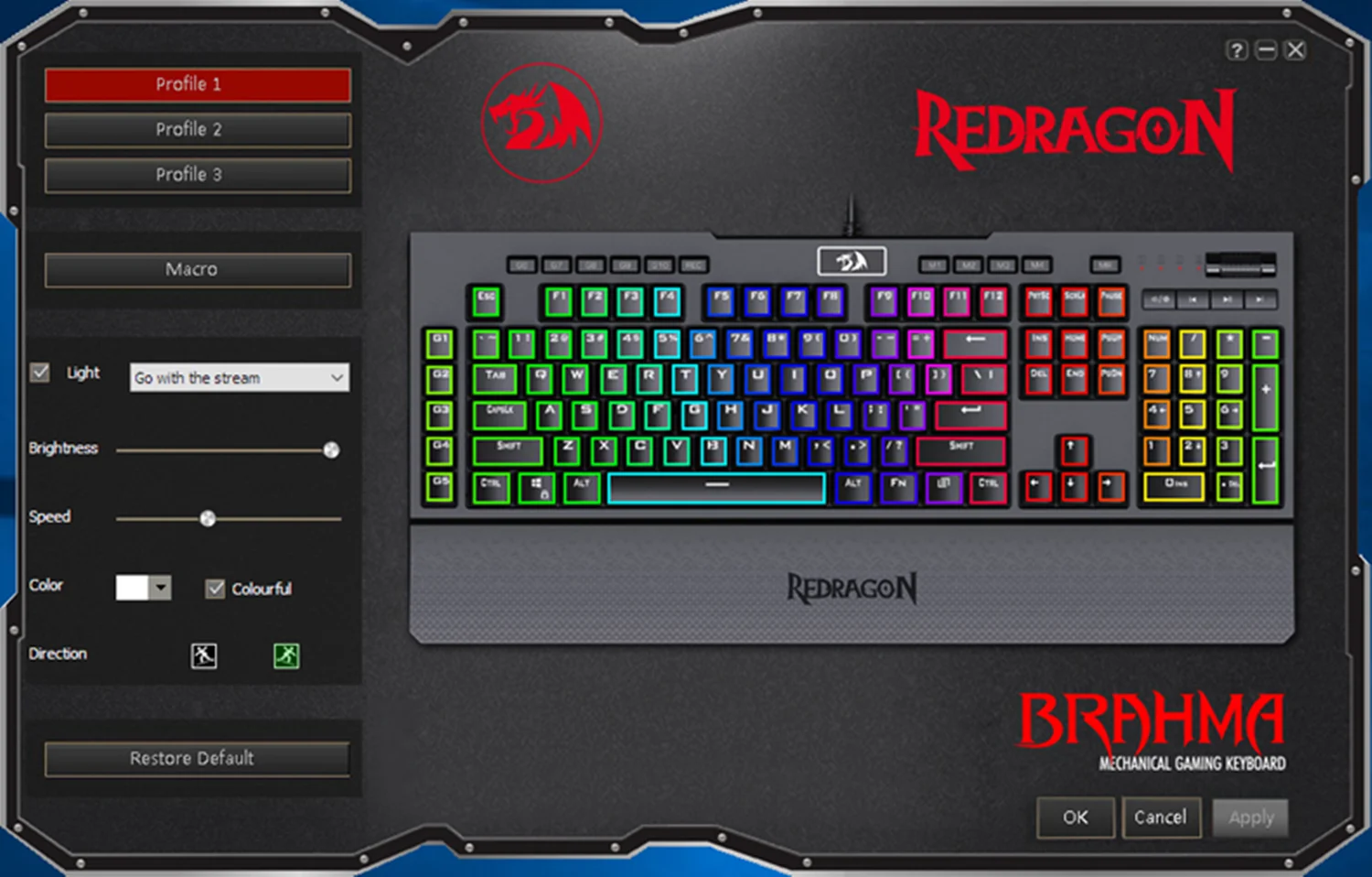 Выделенные макроклавиши и средства управления-10 программируемых макроклавиш (G1-G5, G6-G10) на клавиатуре позволяют записывать макросы на лету без какого-либо дополнительного программного обеспечения, необходимого для установки. Легко редактировать и настроить свой творческий потенциал. Элементы управления позволяют быстро воспроизводить, останавливать и пропускать музыку прямо с клавиатуры, не прерывая вашу игру. Выделенная полоса прокрутки в правом верхнем углу позволяет регулировать громкость системы/яркость подсветки клавиатуры.