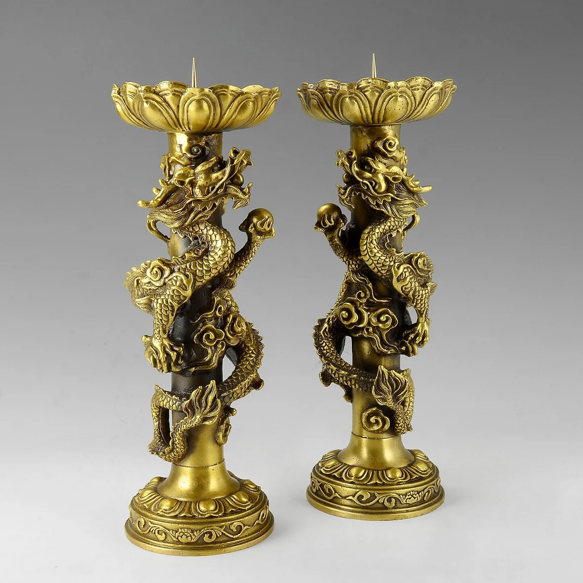 Медный подсвечник «восстановить древний Будда», подсвечник с орнаментом, подсвечник для храма, товары в стиле ретро, подсвечник с драконом, статуя ручной работы