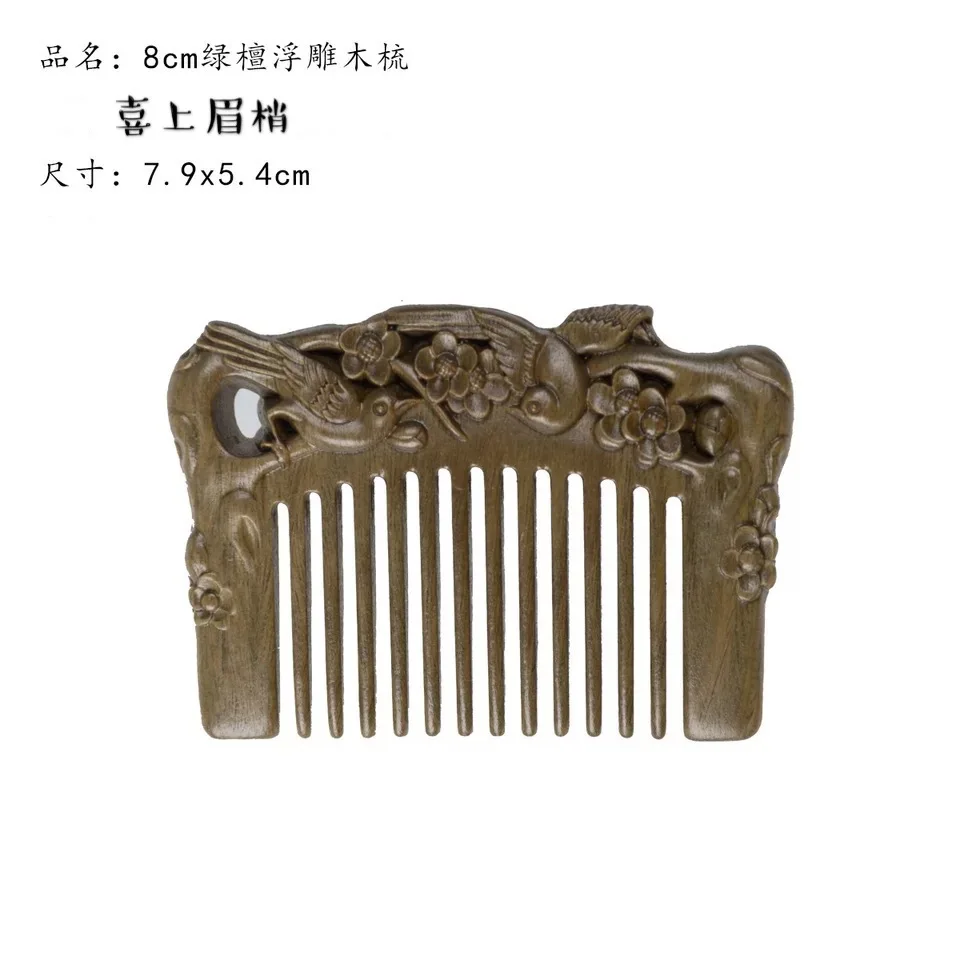 8 см мини-зеленый гребень из сандалового дерева (из-за различных методов измерения, пожалуйста, обратитесь к фактическому полученному размеру)