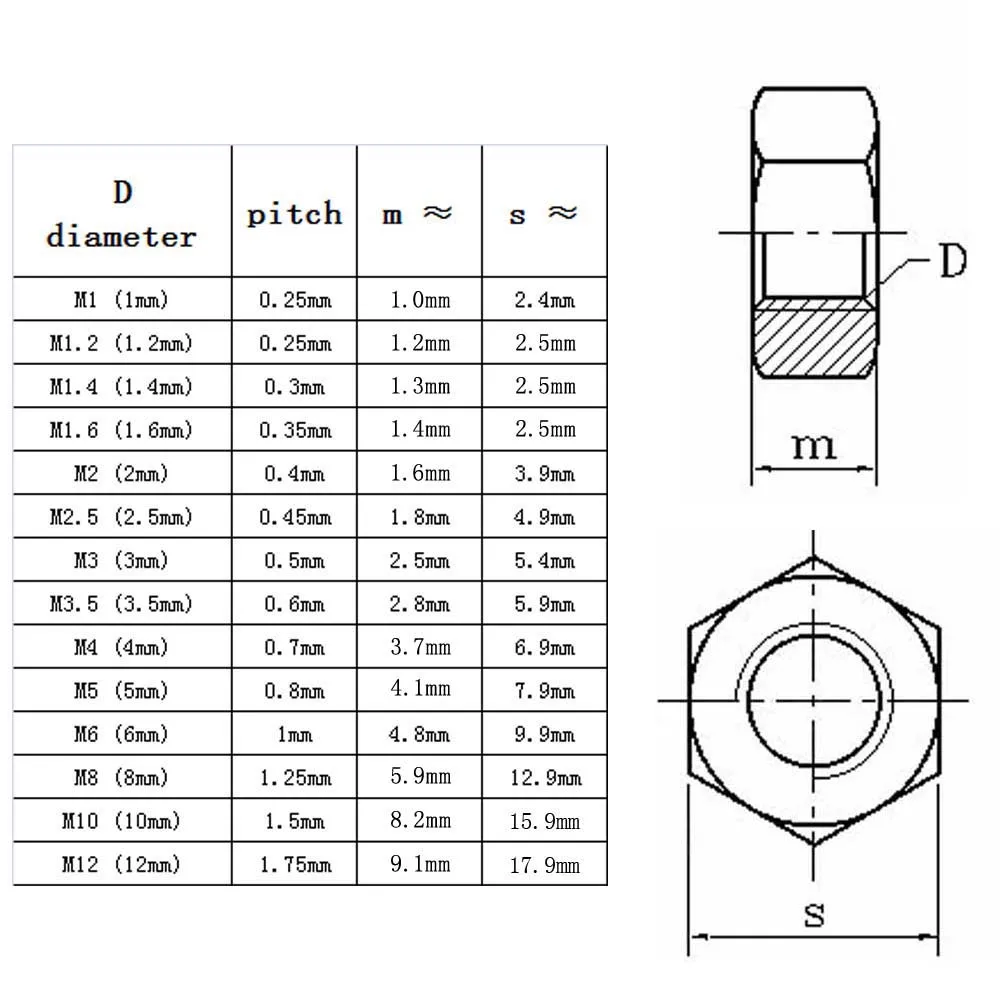M1 / M1.2 / M1.4 / M1.6 / M2 / M2.5 / M3 / M4 / M5 / M6 / M8 / M10 /M12