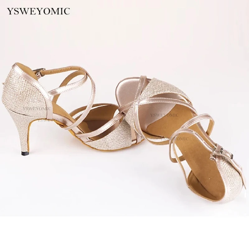 Женские туфли для бальных танцев, золотистые блестящие танцевальные сандалии с открытым носком, каблуком 5-10 см
