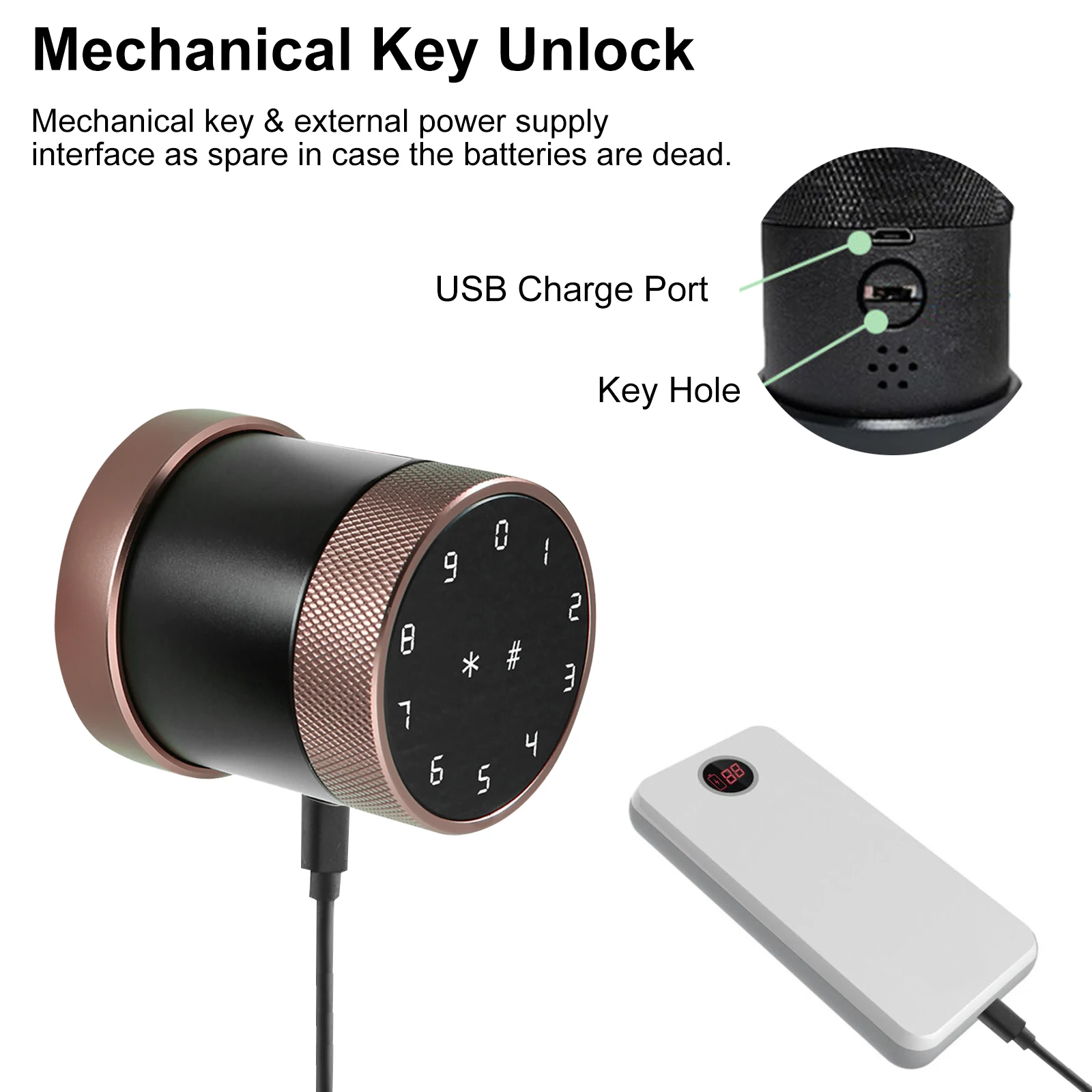 * Разблокировка механического ключа: механический ключ и внешний интерфейс источника питания как запасной чехол батареи мертвы.