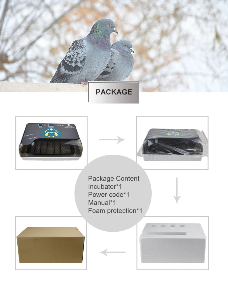 Мини-размер, который вы хотите, емкость4-35Автоматический инкубатор для яиц.Он может люк4.Гусиные яйца или9Утиные яйца или12Куриные яйца или35Перепелиные яйца.-Детали Porudct-Размер продукта (Д * Ш * В): 37,5 см * 25,5 см * 17 смГарантия: 1 годСертификация: Одобрено CEСкорость вылупления: 98%Мощность: 40 ВтНапряжение: эта машина поддерживает 220 В и 110 ВТемпература: Автоматическая температурная системаХарактеристики: устройство защиты от перегрева-Особенности продукта-1. Автоматический Тернер для яиц.