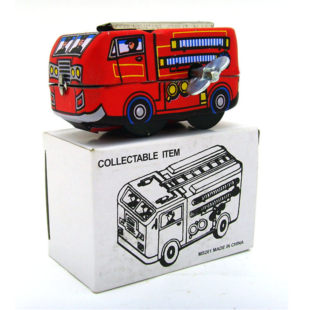 Tinplate Ностальгический Заводной цепной игрушечный реквизит для фотосъемки пожарный грузовик локомотив оловянный игрушечный автомобиль Дети горячий Заводной механизм игрушки колесный автомобиль