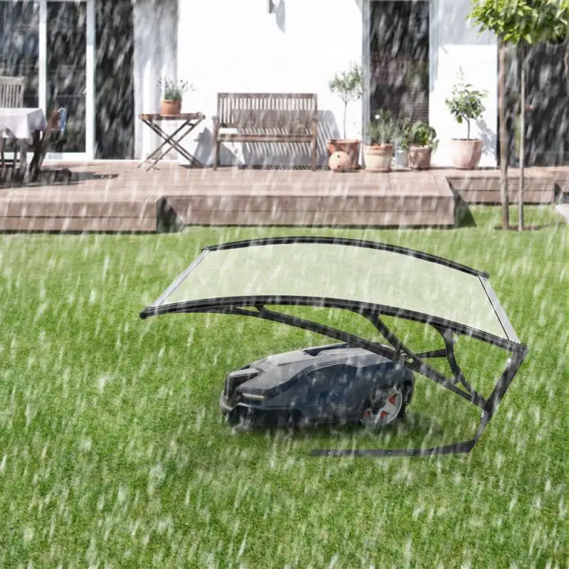 2. Изготовлен из погодостойких материалов, робот газонокосилка гаражная крыша очень прочная. Высококачественные металлические подставки обеспечивают стабильное и надежное основание. С включенными якорями навес для газонокосилки робота может быть легко закреплен на лужайке.