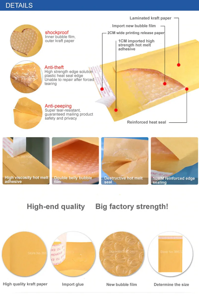 КРАФТ ПАКЕТ с воздушной подушкой A/11 - крафт снаружи, а внутри воздушно-пузырьковый пакет, обеспечивает надежную защиту вашему вложению. Удобен для отправления хрупких грузов почтовыми, курьерскими и транспортными компаниями. В зависимости от габаритов воздушно-пузырькового пакета Вы можете использовать его для транспортировки хрупких сувениров, различных компьютерных и телефонных запчастей, ценных книг, cd-дисков, дисков Blu-ray и других товарных вложений, которые необходимо защитить от ударов, вибрации, влаги и прочих негативных воздействий. Цвет: коричневый, белый Размер: внешний размер 120х175мм +50мм, внутренний размер 100х165мм Дополнительные характеристики: - Наружный слой воздушно-пузырькового пакета – прочная крафт-бумага 80 гр/м2. Она может быть белой или коричневой (иногда коричневый крафт называют также золотым). - Внутренний слой пакета – двухслойная воздушно-пузырьковая пленка 55 гр/м2 из ПВД (полиэтилен высокого давления). Диаметр пузырьков 10 мм, высота 4 мм. - По бокам и внизу пакета идут широкие уплотнения шириной 10 мм. - Клапан расположен на короткой стороне пакета. На клапане – защитная отрывная лента, а под ней качественный силиконовый клей. Воздушно-пузырьковые пакеты называют также воздушно-пузырчатыми пакетами, пакетами с воздушной подушкой, пузырьковыми пакетами, воздушными пакетами, пакетами из пузырчатой пленки, пакетами из воздушно-пузырьковой пленки.
