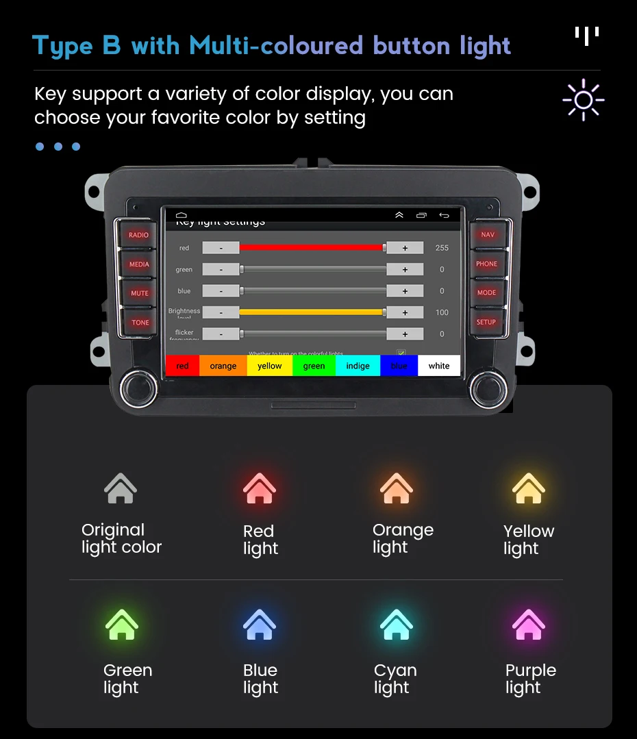 > Многоцветный кнопочный светильник, клавиша поддерживает различные цвета дисплея, вы можете выбрать свой любимый цвет, установив.