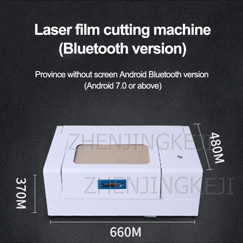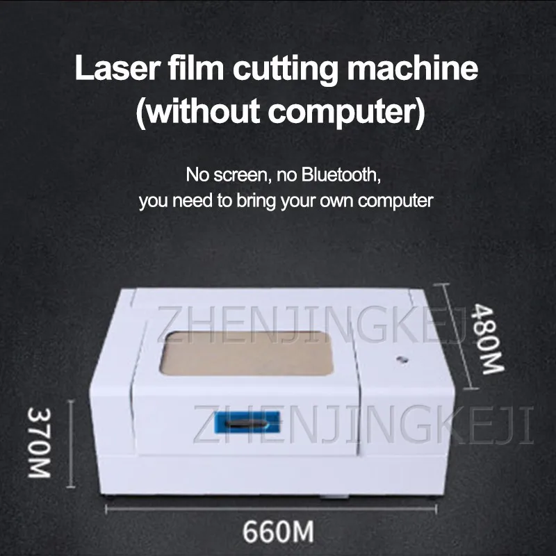 Посылка D: пленочный лазер машина для резки (внешний компьютер) внешнего компьютера, мобильный телефон может быть подключен к Bluetooth Выход напряжение: 110 / 220V стабильное электропитание: 220W Вес: 23 кг Размеры: 660*480*370 мм
