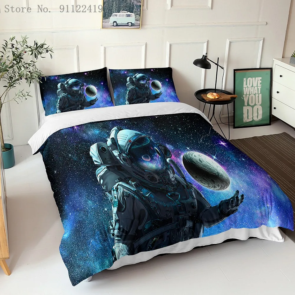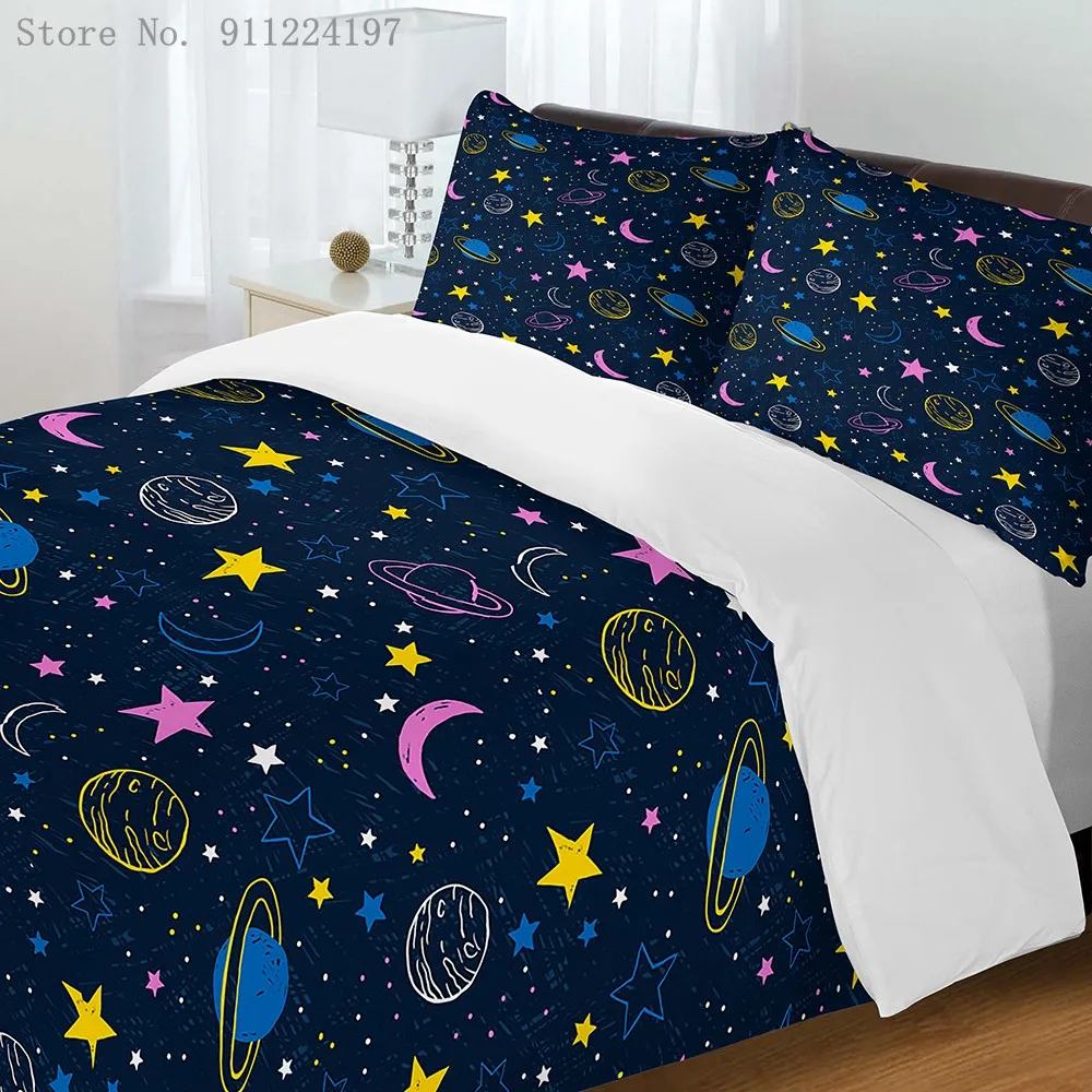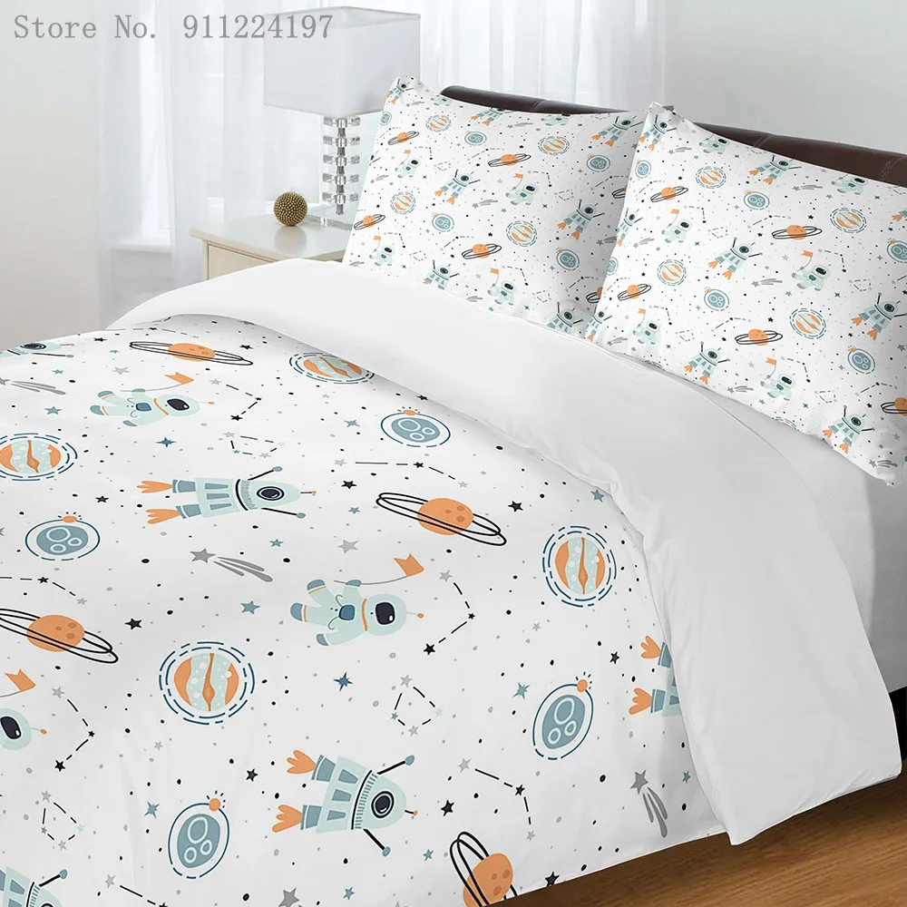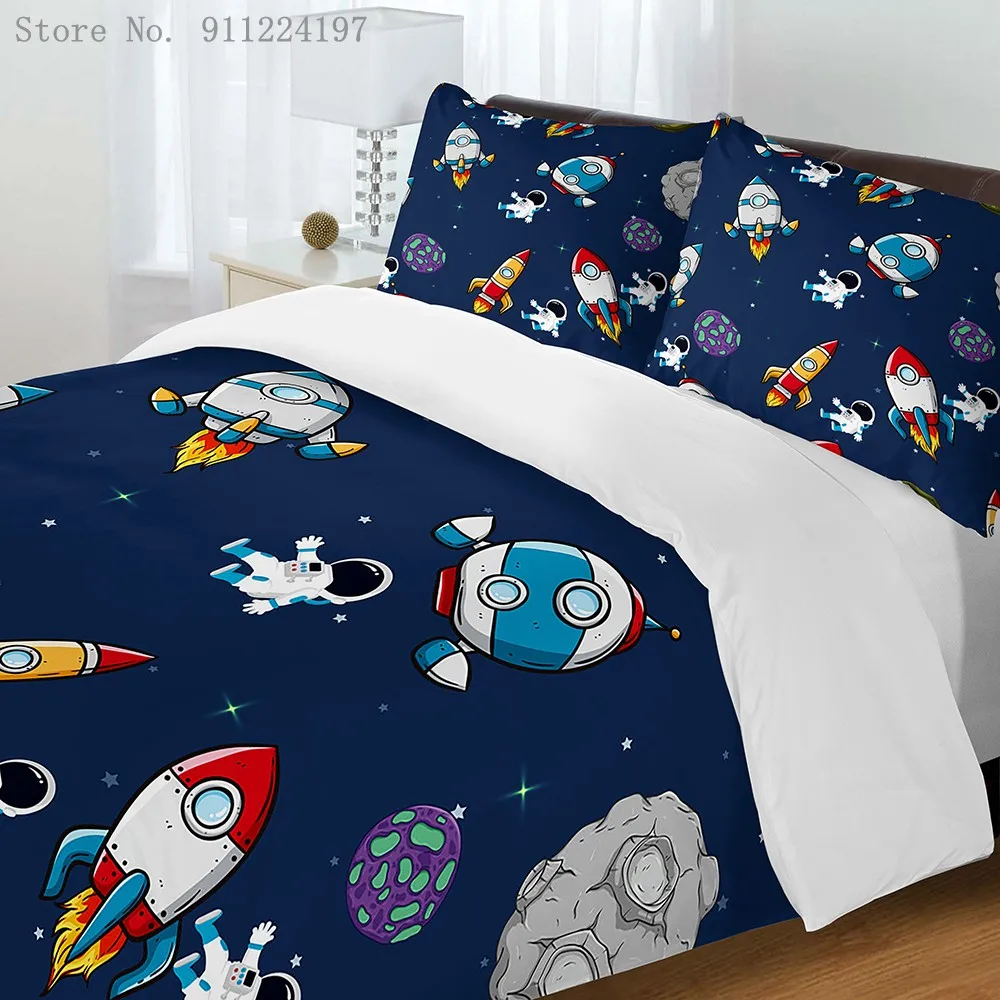 Набор постельного белья с изображением ракеты из микрофибры, детский подарок, пододеяльник, пододеяльник с изображением звездного неба, космонавта, пододеяльник, наволочка, Комплект постельного белья для студентов