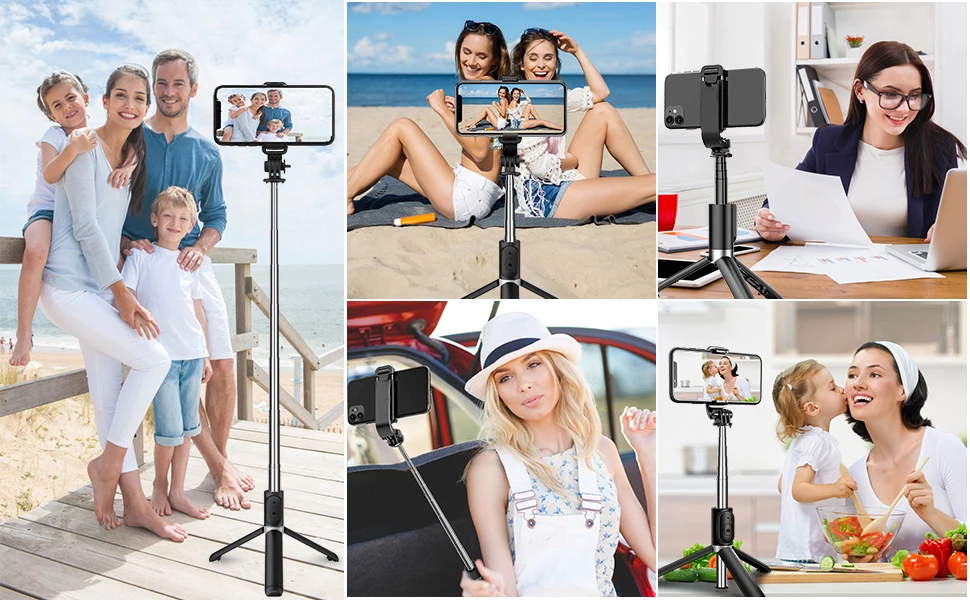 Широкая совместимость-эта селфи-палка подходит для большинства телефонов iOS/Android, GoPro, небольших камер. Несмываемый аксессуар для съемок для путешествий, прямого вещания, записи, видеозвонка, не нужно носить с собой тяжелый штатив.