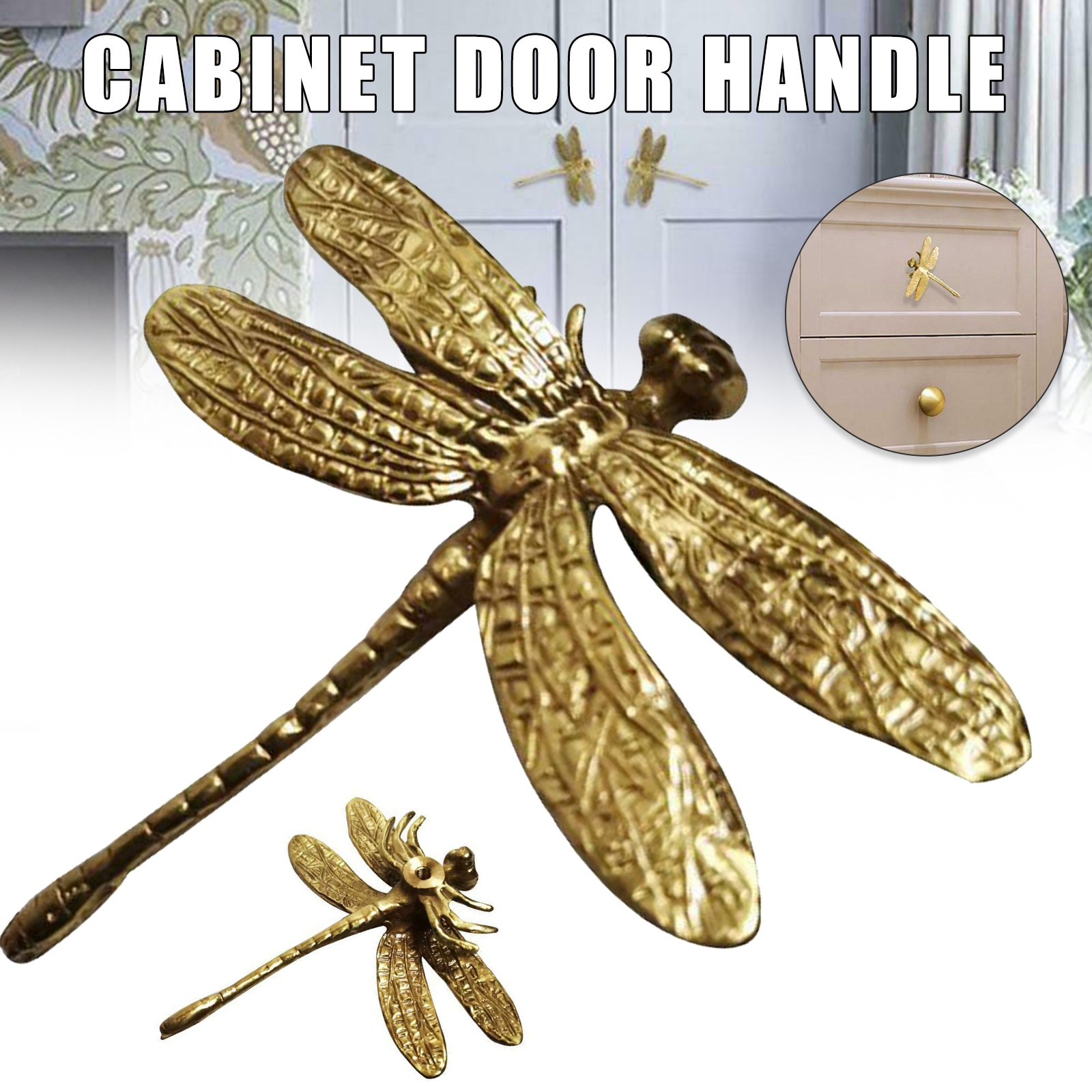 Ретро медная ручка шкафа золотого цвета для ящика двери шкафа ручки для шкафа Бытовая Стрекоза/Бабочка/орхидея форма ручки