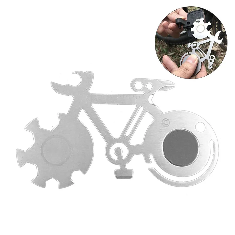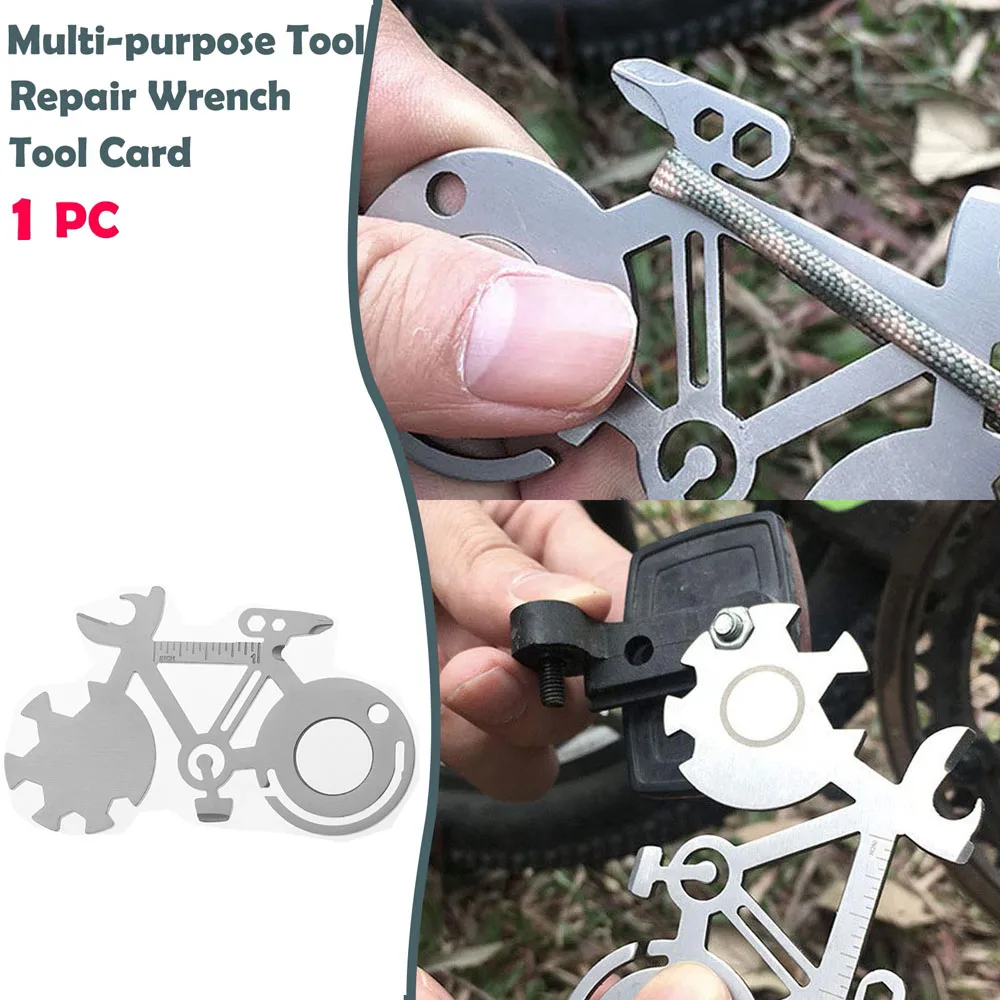 Цвет: как показано на фотографии. Материал: 440 нержавеющая сталь. Размер: 10x6 см. Количество: 1 шт. Посылка включает в себя: 1 * карточка для горного велосипеда. Описание: Он изготовлен из нержавеющей стали и долговечен. Винт ключи, дюймовый стандарт делятся на 4 см, 5 см, 6 см, 7 см, 8,5 см для того, чтобы удовлетворить потребности различных спецификаций винта. Он оснащен Открывателем и чехлом для удобного использования, замочной скважиной для удобной переноски и может использоваться с карабином.