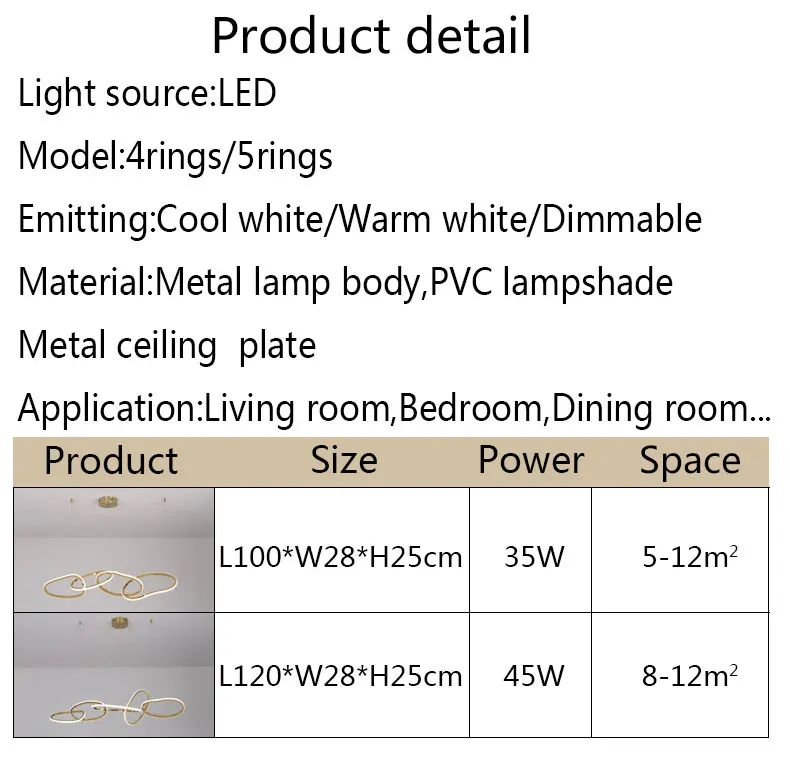 5 колец/L120 * W28 * h25 см мощность: 45 вт пространство: 8-15 м2