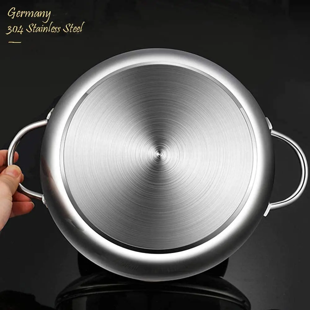 Высшее качество-это Сковорода из нержавеющей стали марки 304 для улучшения здоровья и долговечности, не прилипает и легко чистится. С простым дизайном и хорошей функциональностью. Съемная крышка кастрюли из нержавеющей стали, портативный дизайн и легко носить с собой.