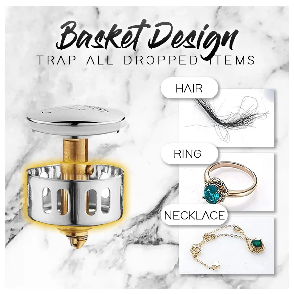 Всплывающий дизайнПереворачивает традиционный, неудобный слив (Е. Г. Основная вилка с цепочкой)! Просто нажмите верхнюю крышку вниз, чтобы переключить 2 режима-Пробка(Для сохранения воды) иФильтр(Для слива воды).