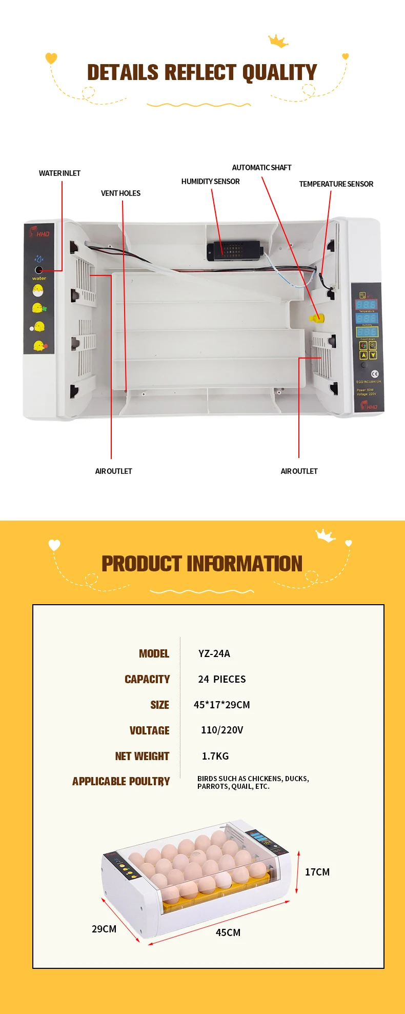 Мы являемся производителем инкубаторов HHD, профессиональный инкубатор яиц с 1995 года.