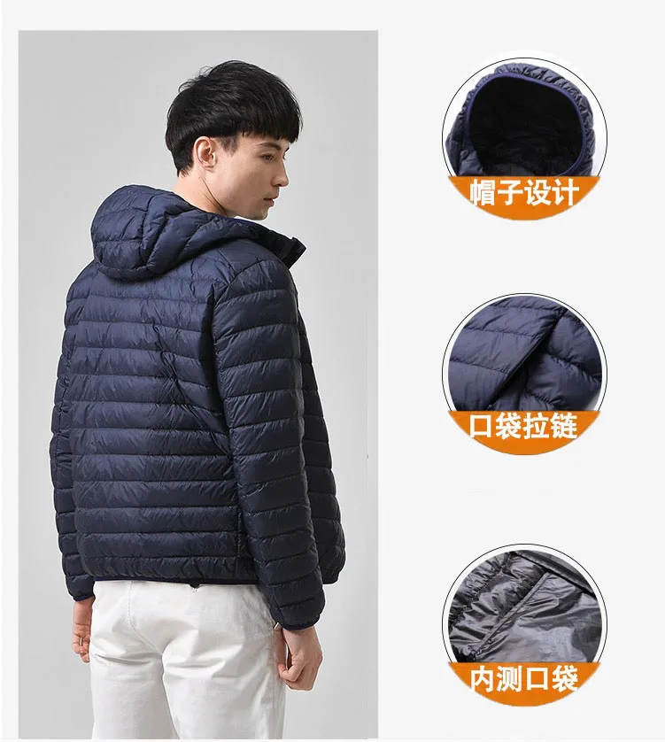 Мужская Всесезонная Ультралегкая упаковочная пуховая куртка, водонепроницаемая и ветронепроницаемая дышащая куртка, большие размеры до 7XL, мужские куртки с капюшоном