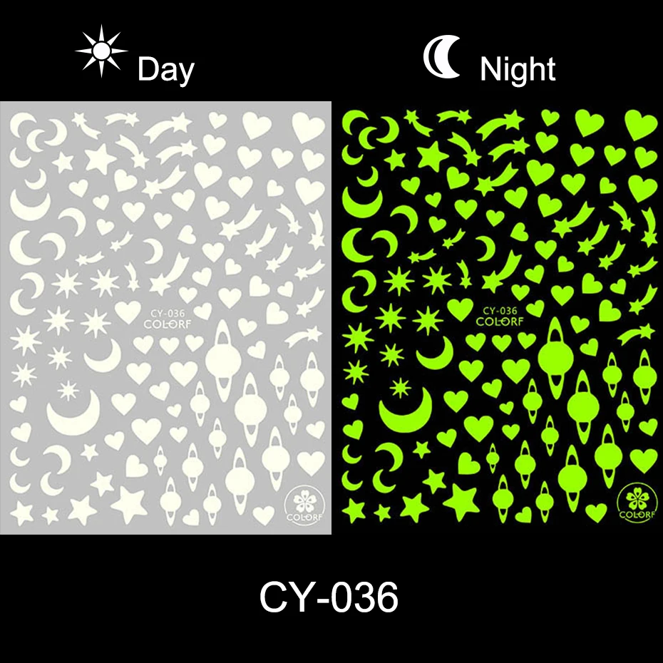 1 шт 3D флуоресцентные наклейки для ногтей Светящиеся звезды галактика сердце бабочка неоновые зеленые маникюрные слайдеры в темноте