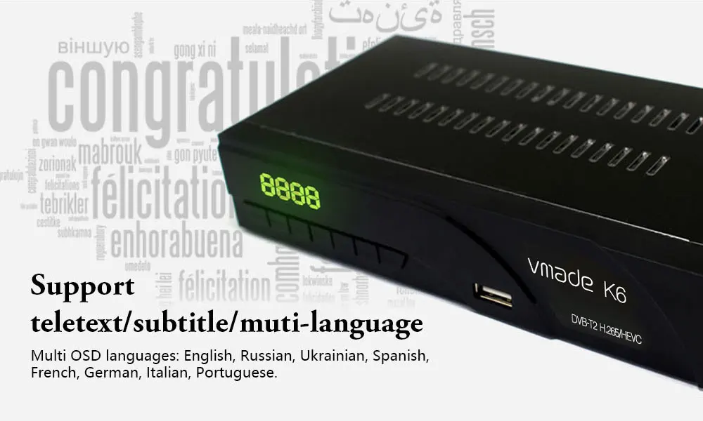 • Используется для любых DVBT/DVBT2 стран, таких как Германия/Великобритания/Италия/Франция/Испания/Швеция/Южная Африка/и т. Д.