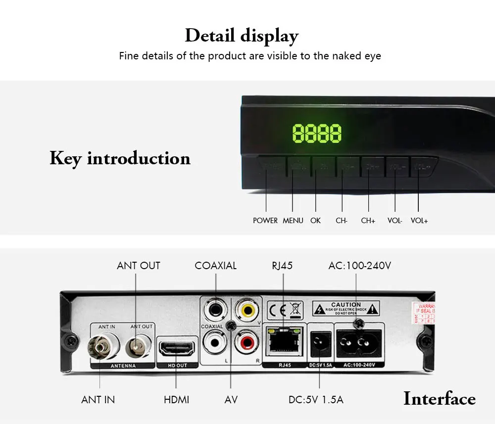 -Поддержка подключения: выход HDMI (1080P),RJ45 LAN, Коаксиальный, радиочастотный вход и выход, usb-порт,