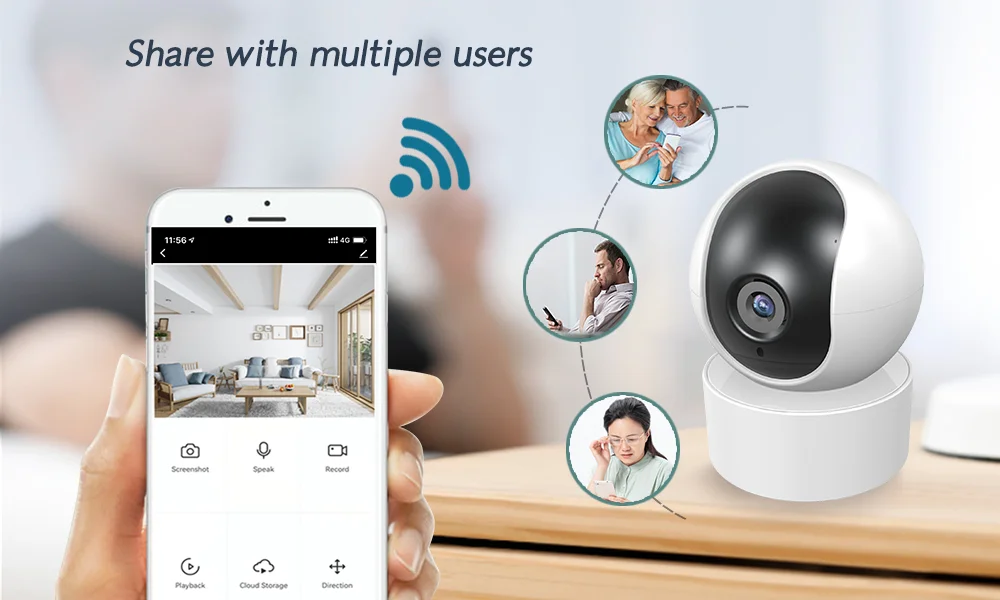 Плавный контроль панорамирования и наклона Головка камеры вращается с наклоном 350 ° и 80 °. Управляйте движениями камеры. Нажмите и удерживайте телефон, чтобы увидеть то, что вы хотите увидеть.