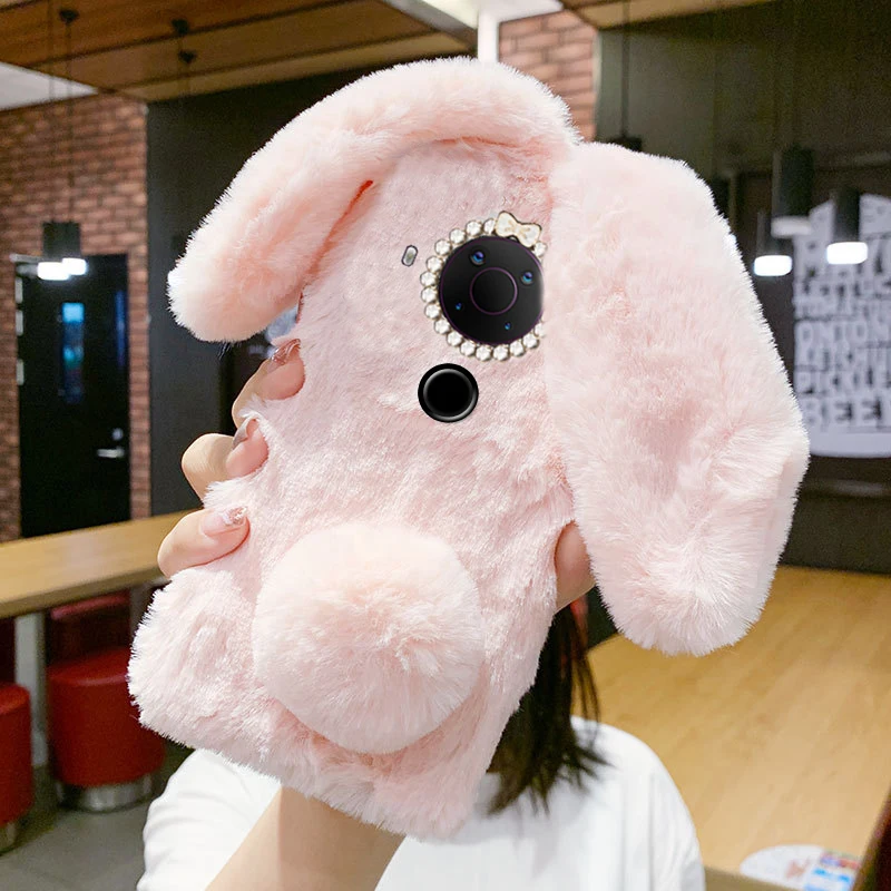 Fashion Cartoon Cute Rabbit fluffy fur Bunny silicone cover For Nokia 5.4 3.4 Phone Case For Nokia 7.2 6.2 4.2 3.2 2.2 Case Fluffy rabbit Phone Case For Nokia 2.3 5.3 5.1 6.1 Plus Nokia G21 G20 G10 Cases .