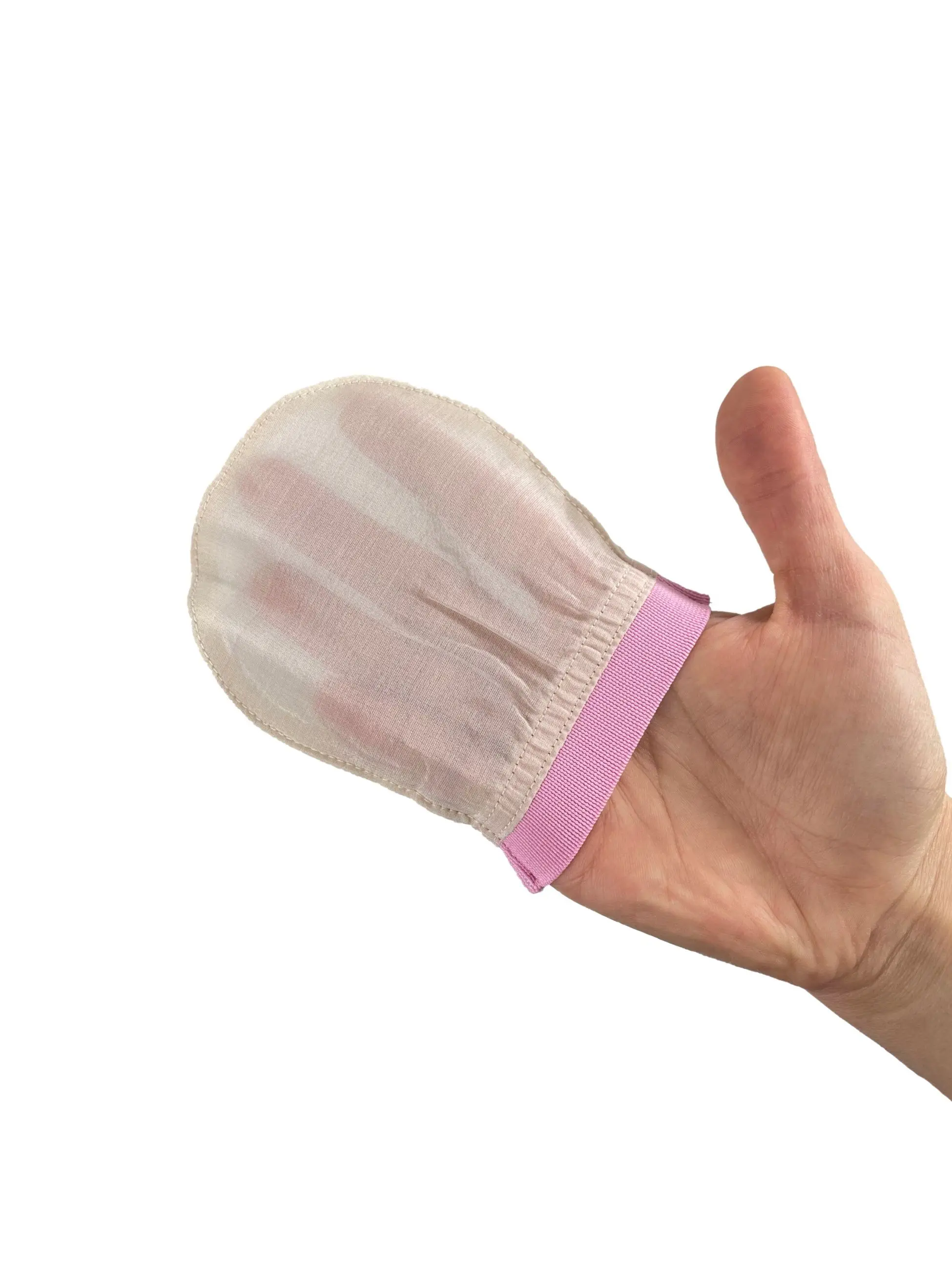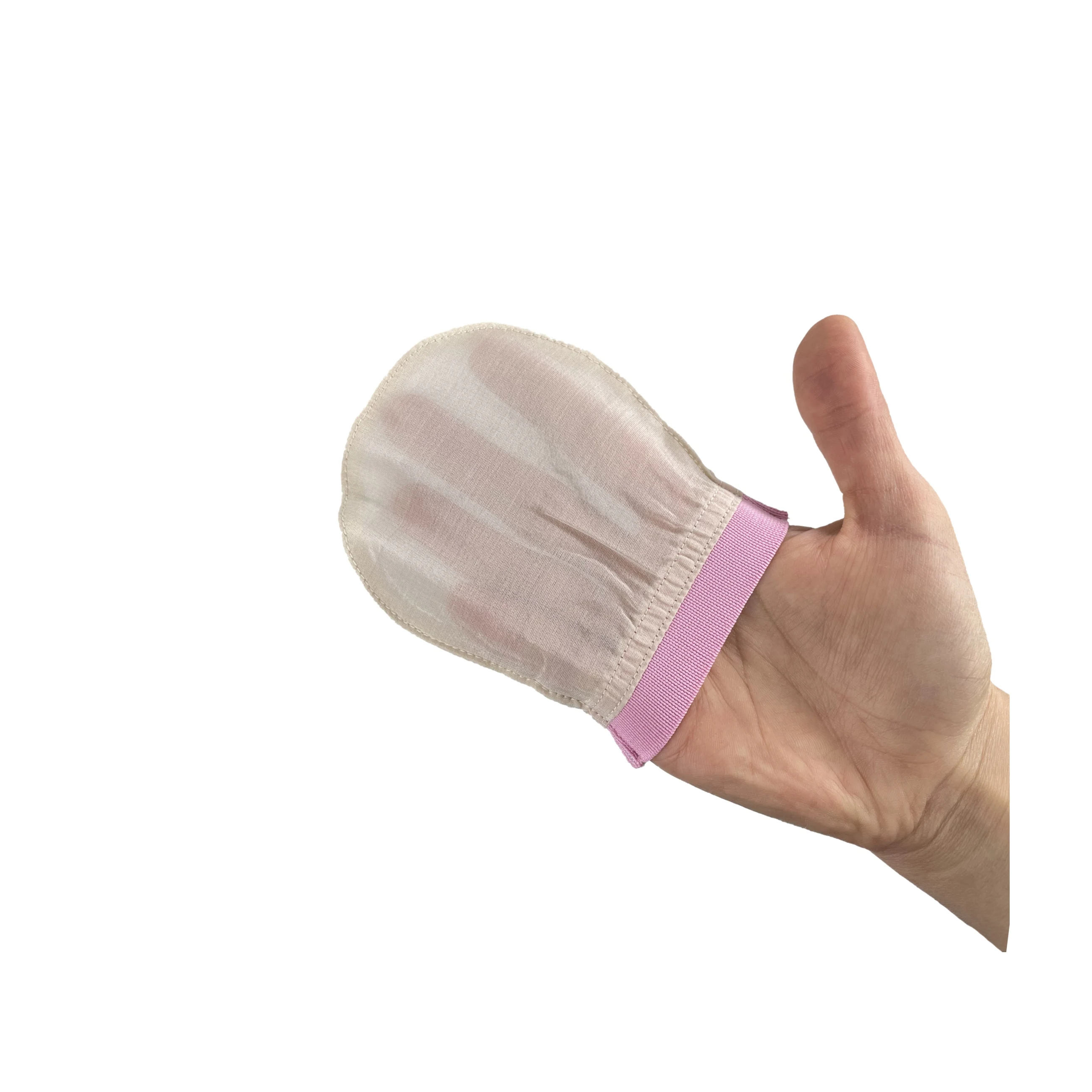 Натуральный сырой шелк-кокон является одним из наиболее подходящих материалов для глубокой очистки и удаления омертвевшей кожи. Сырьевая шелковая ткань cocoon используется в уходе за кожей и в производстве отшелушивающих перчаток в течение многих лет и является предпочтительным из-за эффективности удаления омертвевшей кожи и раздражает кожу человека меньше, чем другие материалы. Сырой шелк-кокон более натуральный, эффективен после первого использования, и его ткань более прочная. Естественный цвет сырого коконового шелка варьируется между Кремовым и бежевым в зависимости от сезона сбора и места.