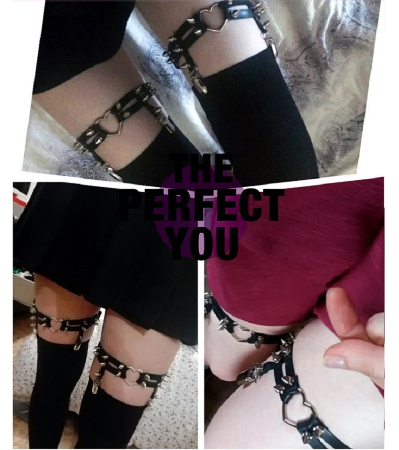 Панк сексуальный Спайк подвязка пояс рок заклепки эластичный пояс Подтяжки 2 клипсы персонализированные шипованные женские девушки ноги кольцо ожерелье ювелирные изделия
