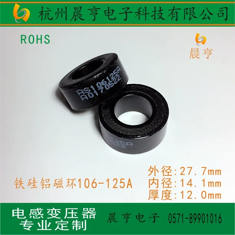 Наружный диаметр после покрытия 27,70 мм, внутренний диаметр 14,10 мм, толщина 11,99мм, однокаточная индуктивность 0157Uh