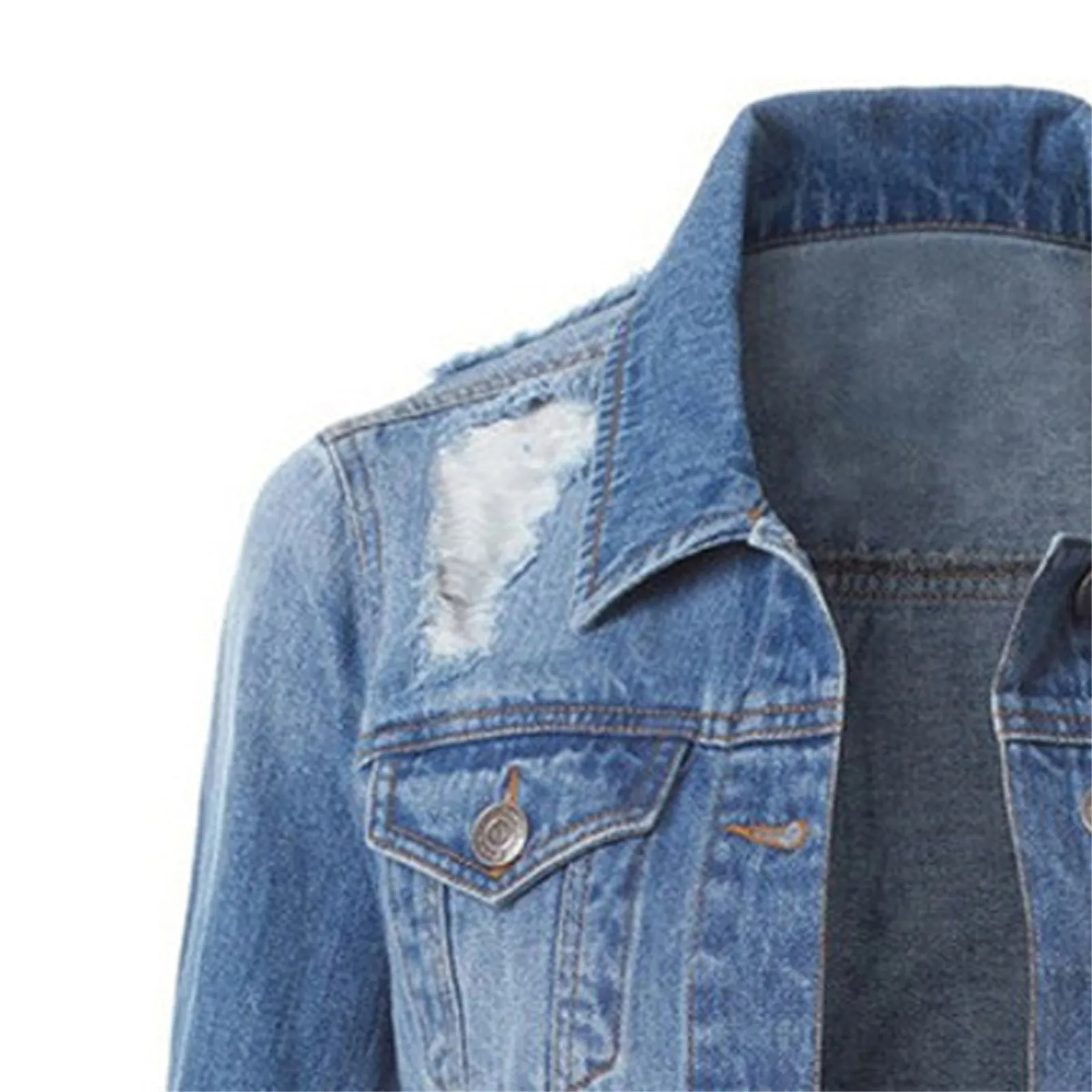 Женская Повседневная модная джинсовая куртка, джинсовое пальто с бусинами, верхняя одежда, пальто