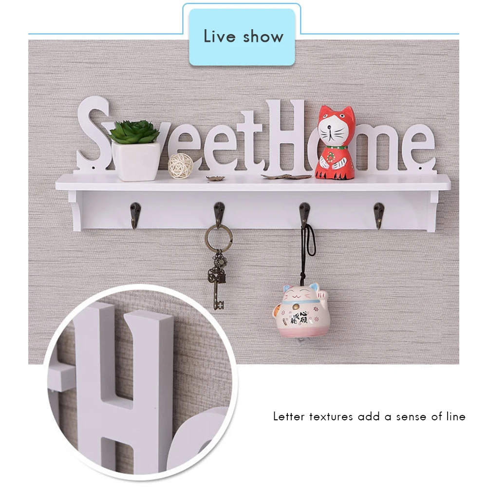Storage Rack Sweet Home Wall Mounted Creative Hanger Storage Shelf for Coat Hat Clothes Key Living Room Kitchen Bedroom #20