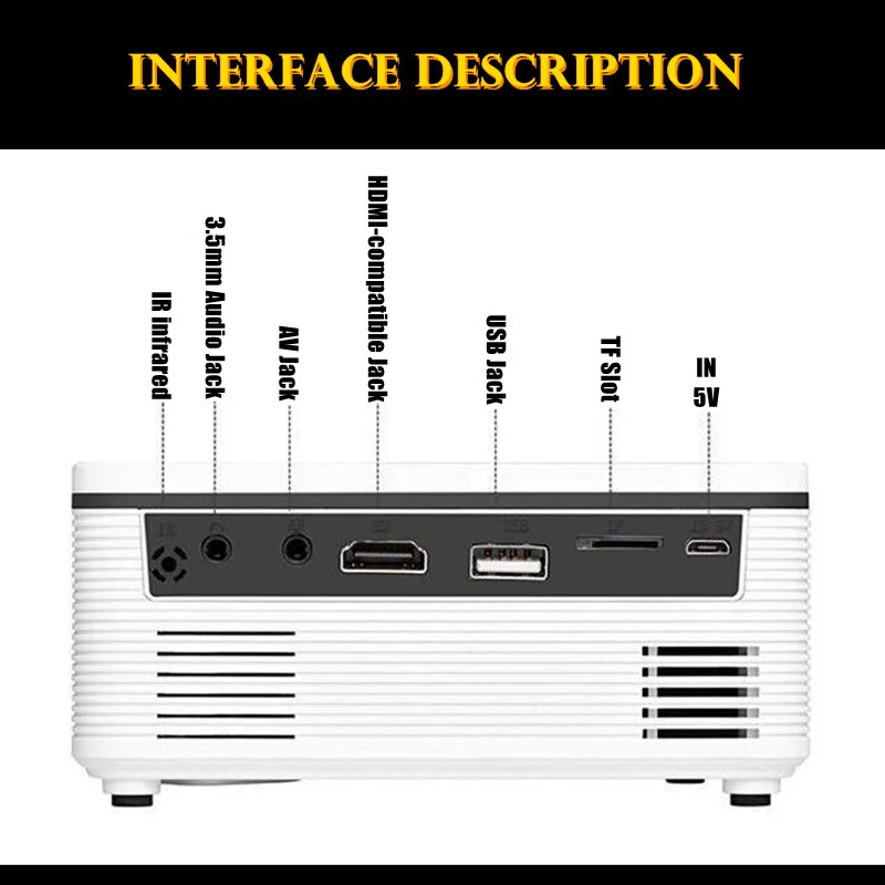 Интерфейс: совместимому с HDMI, USB, 3,5 мм аудио, слот для карт TF