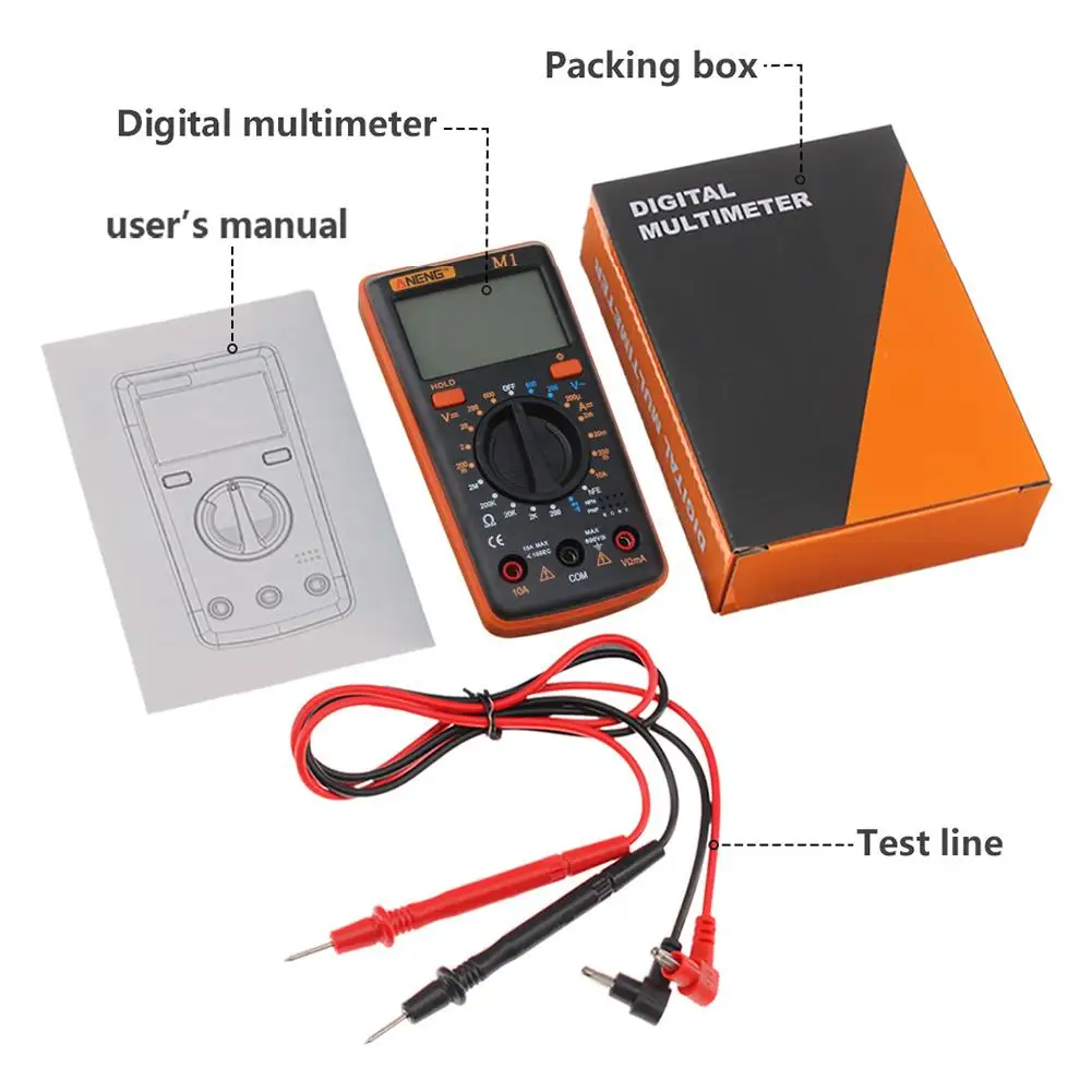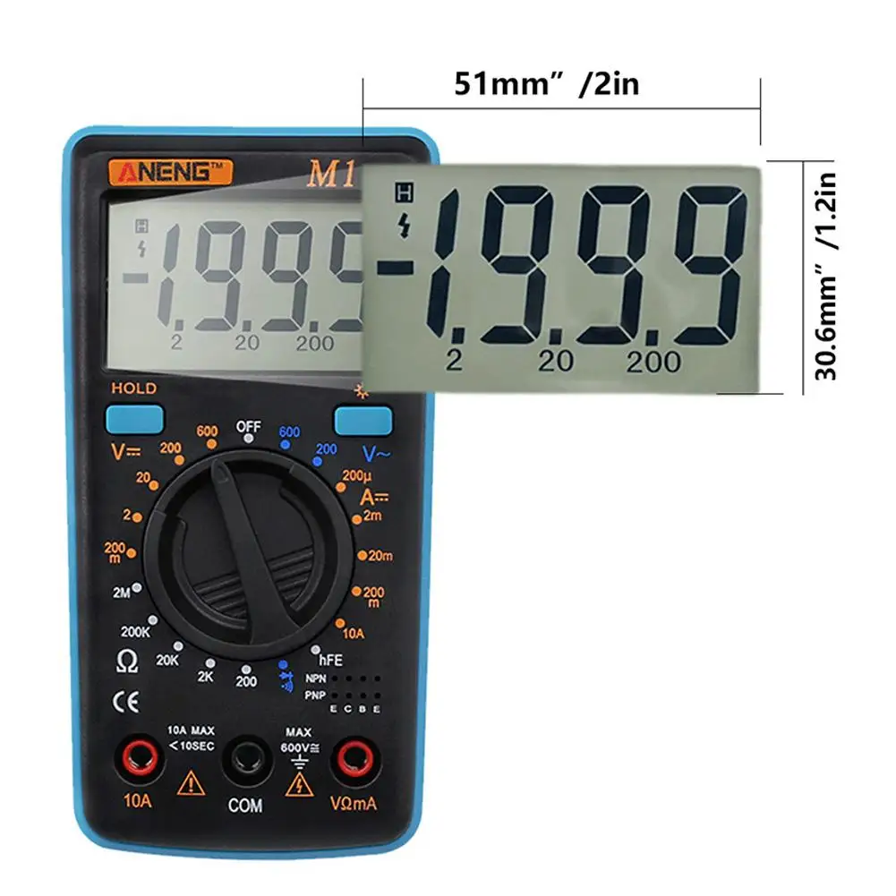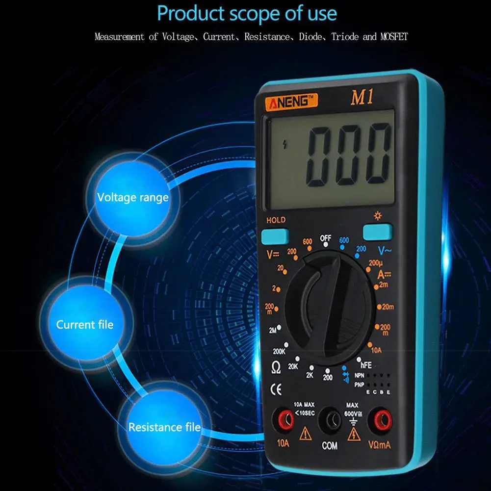 Счетчик Ручной цифровой мультиметр 3 1/2 для измерения напряжения постоянного и переменного тока, постоянного и переменного тока, сопротивления, диодов, транзисторов и непрерывности теста с батарейным питанием. Для специальных моделей также используется для тестирования частоты, температуры, емкости и NCV.