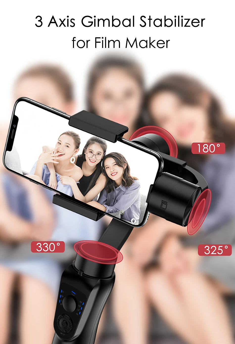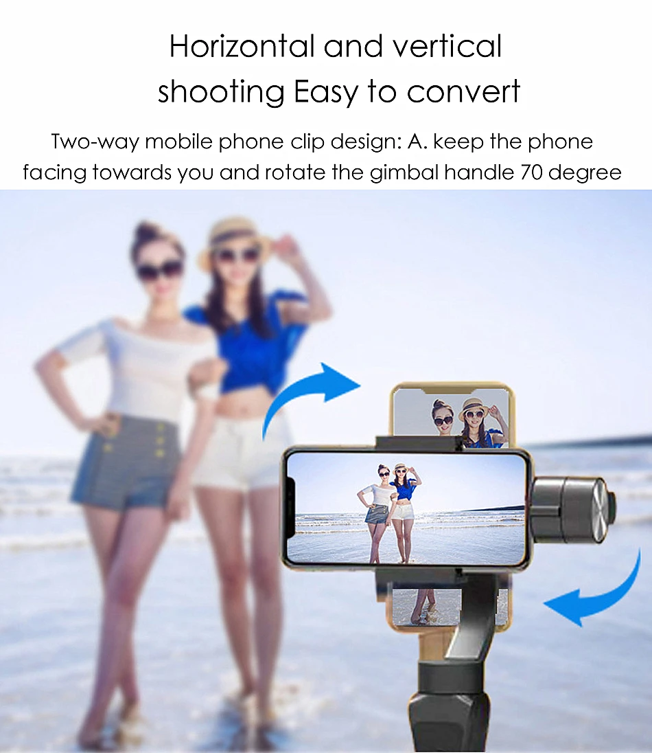 1. Поддерживает смартфоны весом до 8,8 oz / 250g, и до 3,35 " / 82 мм по высоте 2. 330 ° панорамирования, 325 ° наклона и 180 ° рулона; Большой, cine-style фокус/зум-колесо с свидетельским знаком 3. Эффект масштабирования Dolly Vertigo, несколько временных интервалов и выбор режима следования; 4. До 12 часов работы (время сна), возможность зарядки телефона во время съемки, поддержка внешнего блока питания 5. Используйте с бесплатным, загружаемым приложением Gimbal Pro для управления функциями iOS/Android 6. Он поддерживает android 5,0 или более новый смартфон. И IOS. 10,0 или более новый (например, iphone6/7/8/11/s/plus/pro,iphone X/Xs/Xr/Max)