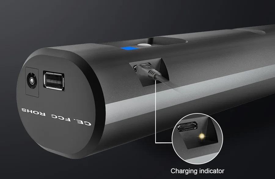 Воздушный насос через usb-кабель для зарядки, когда индикатор питания красный от имени необходимости зарядки, дисплей зеленый от имени полного.