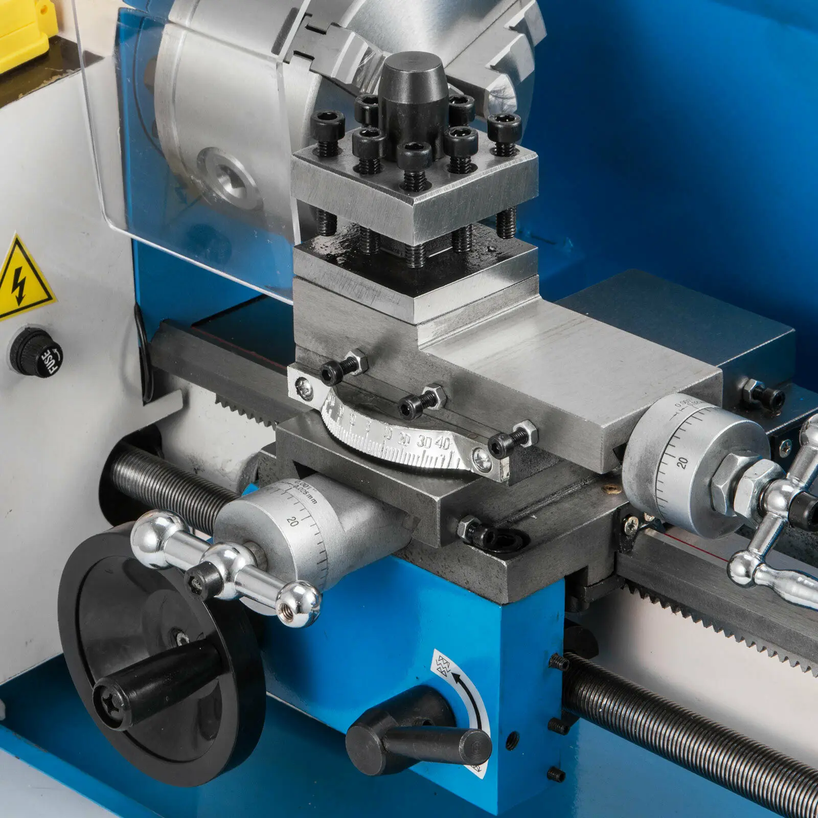 3-кулачковый Самоцентрирующийся Зажимной патрон прошел тестирование с точность и повторяемость, чтобы установить цилиндрический материалы стабильно. Защита от брызг в комплекте. Шпинделя поддерживается точность конический ролик Подшипники, шпиндель, точностью 0,01 мм.