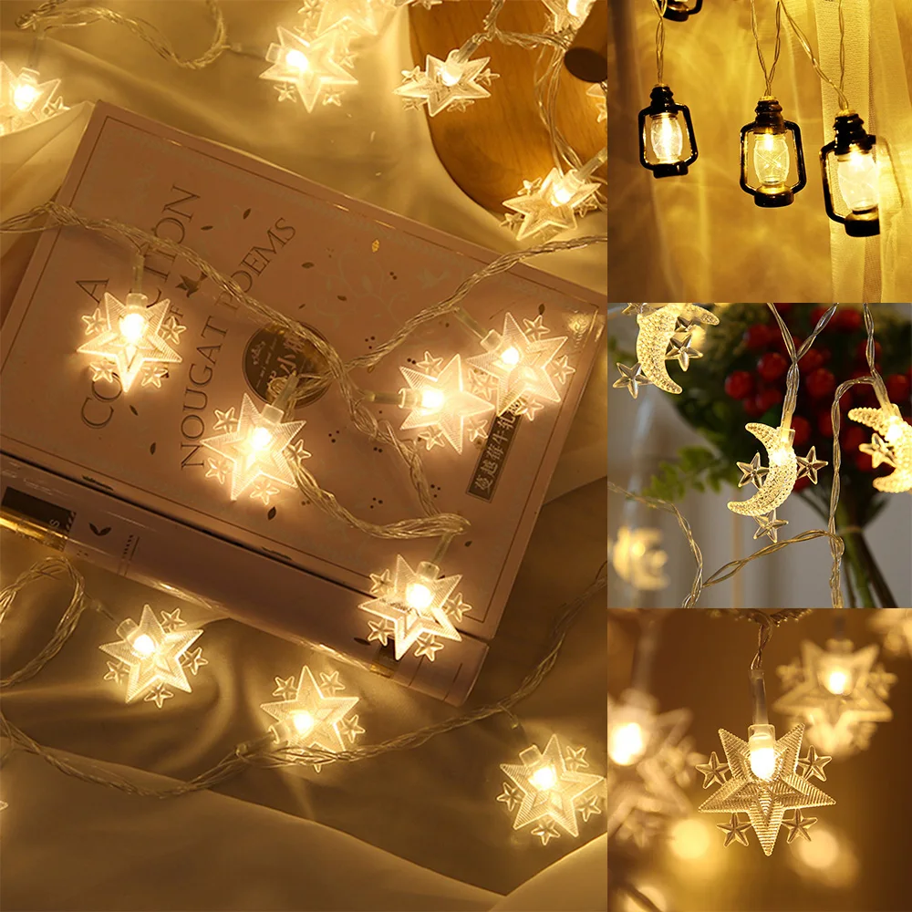 10LED 1.5 Meters Star Moon String Lights Battery Powered Fairy Bedroom Lights LED Kerosene String Lights Eid Muslim Islam Festival Decorative String Lights For Indoor Ramadan Wedding Party Garden Decoration Warm White