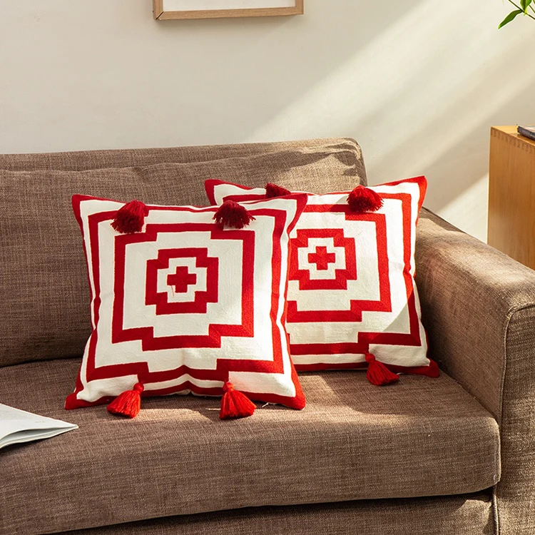 Узор: вышитая декоративная подушка с вышивкой(Только одна сторона имеет вышитый узор, другая сторона однотонная)
