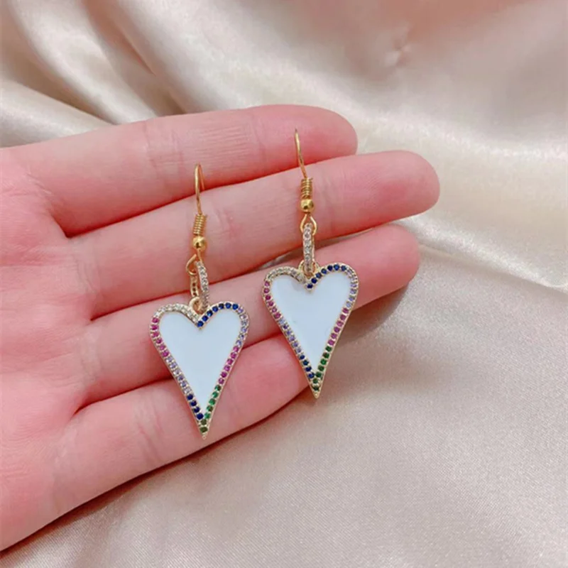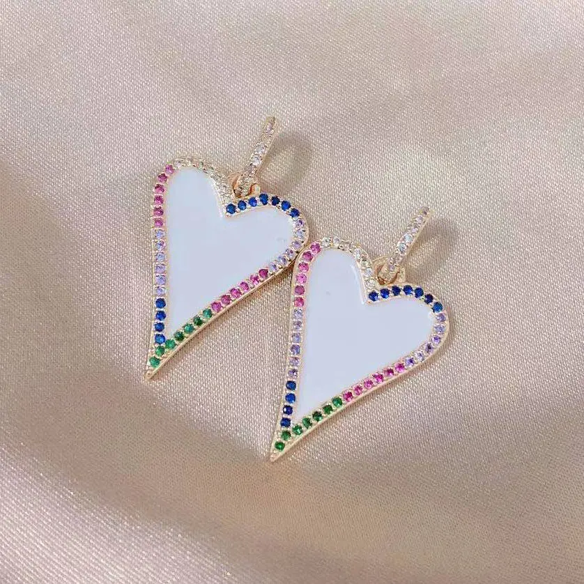 24K золото цвет латунь лето женщина циркон эмаль Белое Сердце Форма Подвески Серьги