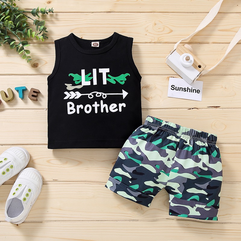 Футболка без рукавов с надписью «Brothers Match», топы, шорты, штаны, комплект из 2 предметов, комплект летней одежды