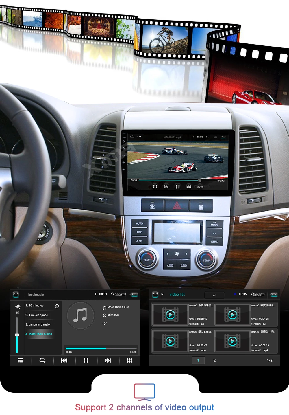 Изображение мобильный телефон будет отображаться на DVD, а также музыка, видео, игрыApoyo 4G красный (опционально)Для мобильных телефонов Android с сенсорным экраном DVD можно управлять мобильным телефоном. (Обратите внимание: он может поддерживать не все части мобильных телефонов Android)