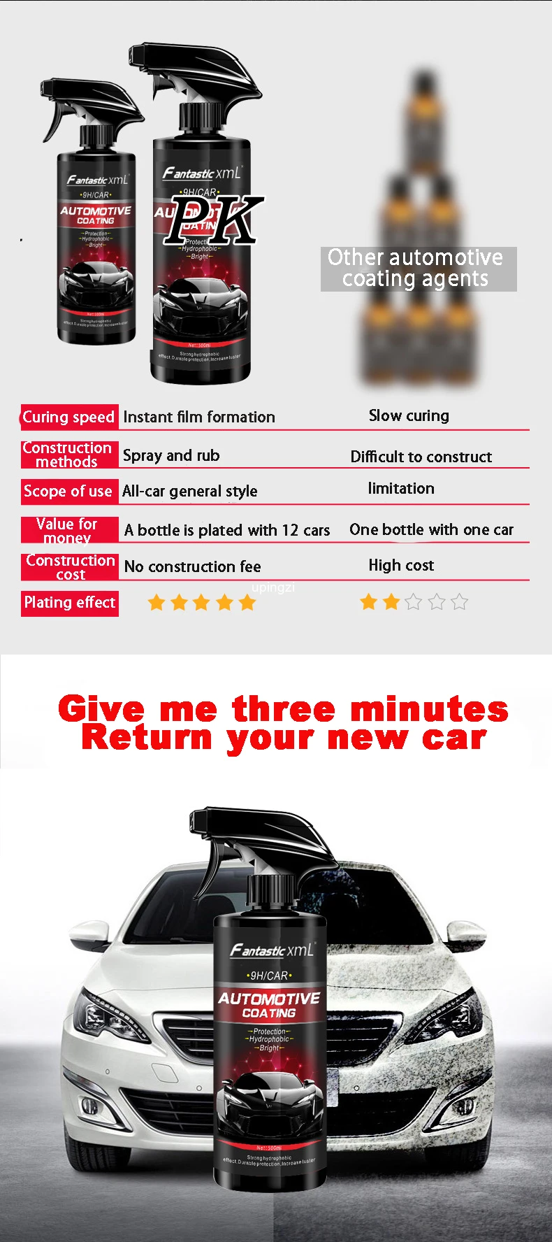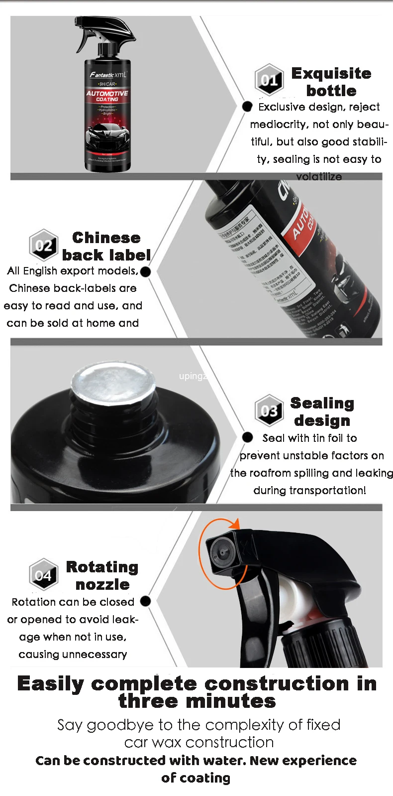 > Детальная информация о товаре < Жидкое керамическое аэрозольное покрытие, автомобильный лак, спрей, герметик, верхнее покрытие, быстрое нано-покрытие, 500 мл, Автомобильный Спрей, воск, Чистка автомобиля для автомобиля Параметры: Название продукта: нанопокрытие агент Емкость продукта: 500 мл Способ хранения: помещается в прохладное сухое место Срок годности: три года Особенности: 1. Большая емкость, одна бутылка может использоваться 12 раз, универсальна для всего внешнего вида автомобиля, всех видов автомобильной краски. 2. Вода в форме листьев лотоса, не загрязняет и легко моется: пыль, грязь и другие пятна легко прилипают к поверхности краски, чтобы сделать поверхность краски грязной, с эффектом листьев лотоса после нанесения покрытия, улучшите чистку поверхности краски и гидрофобность