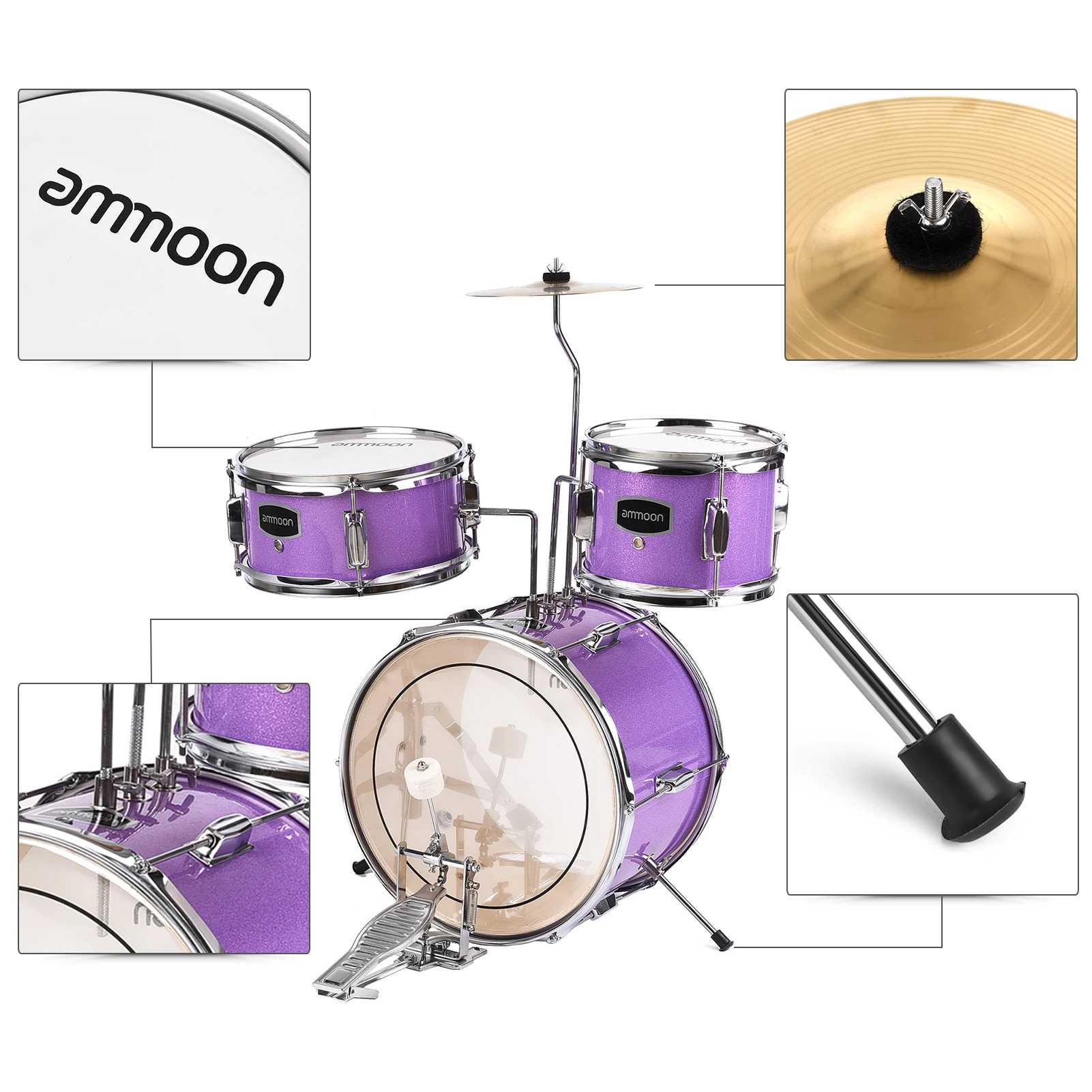 3 шт барабанная установка имеет все необходимое, чтобы начать обучение барабана играть, идеально подходит для детей и начинающих. Это хороший подарок для них.